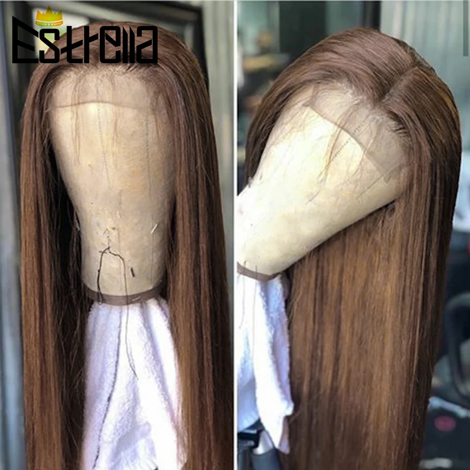 Парик из натуральных прямых каштановых волос, перуанский, медовый, блонд, 4 х4, предварительно выщипанный, имбирный, оранжевый, с застежкой, 150% Реми