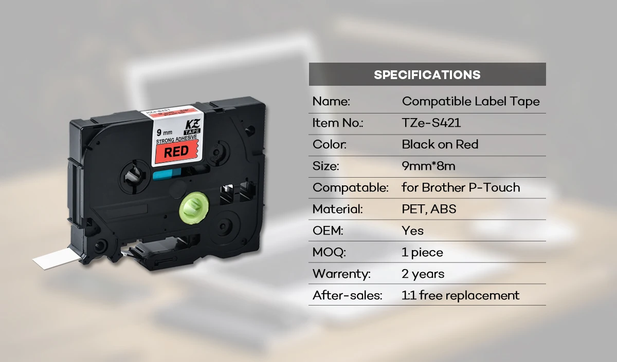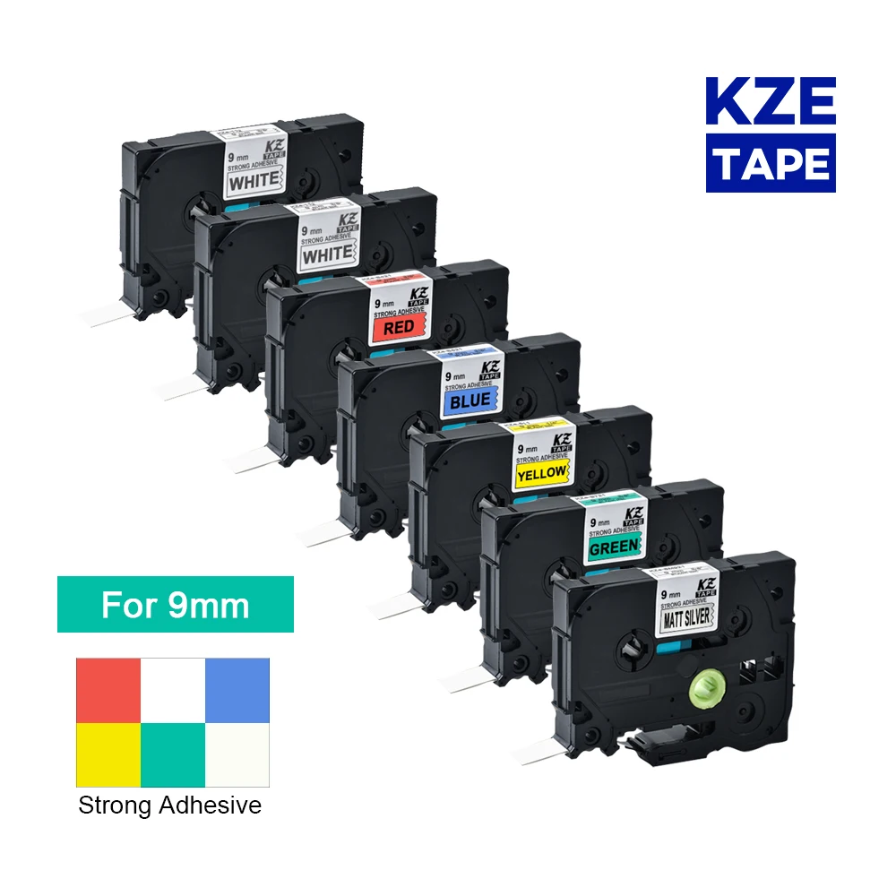 -Торговая марка: Kze лента-изделие: сильный клей TZe лента для маркировки-Номер модели: Tze S121 / Tze S221 / Tze S421 / Tze S521 / Tze S621 / Tze S721 / Tze SM921-Цвет: Черный на прозрачном/черном на белом/черный на красном/черный на голубом/черный на желтом/черном на зеленом/черном на матовом серебре-Размер: 9 мм x 8 м-Материал: ПЭТ, совместимость с ABS: для Brother P-touch