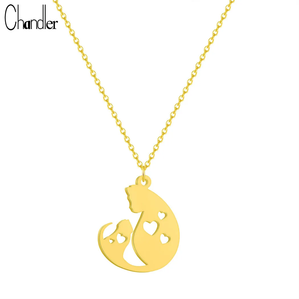 Ожерелье Chandler из нержавеющей стали для мамы и ребенка, ожерелье с котенком, любимым котенком, ювелирное изделие, чокер для семьи