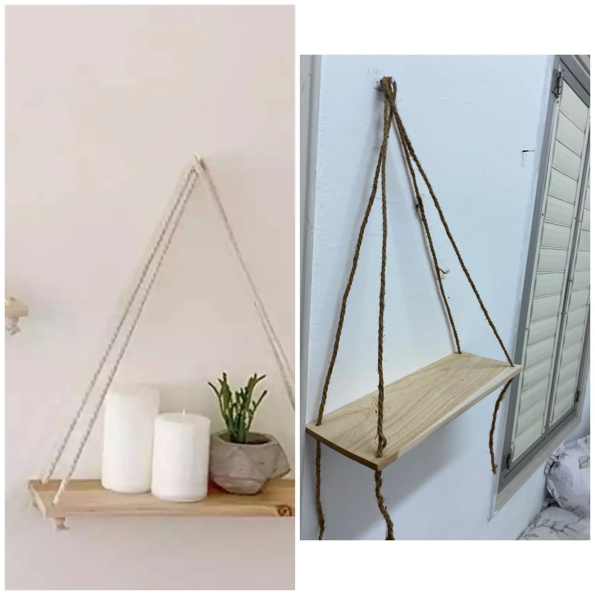 Деревянная подвесная веревка в стиле бохо, настенные навесные полки...