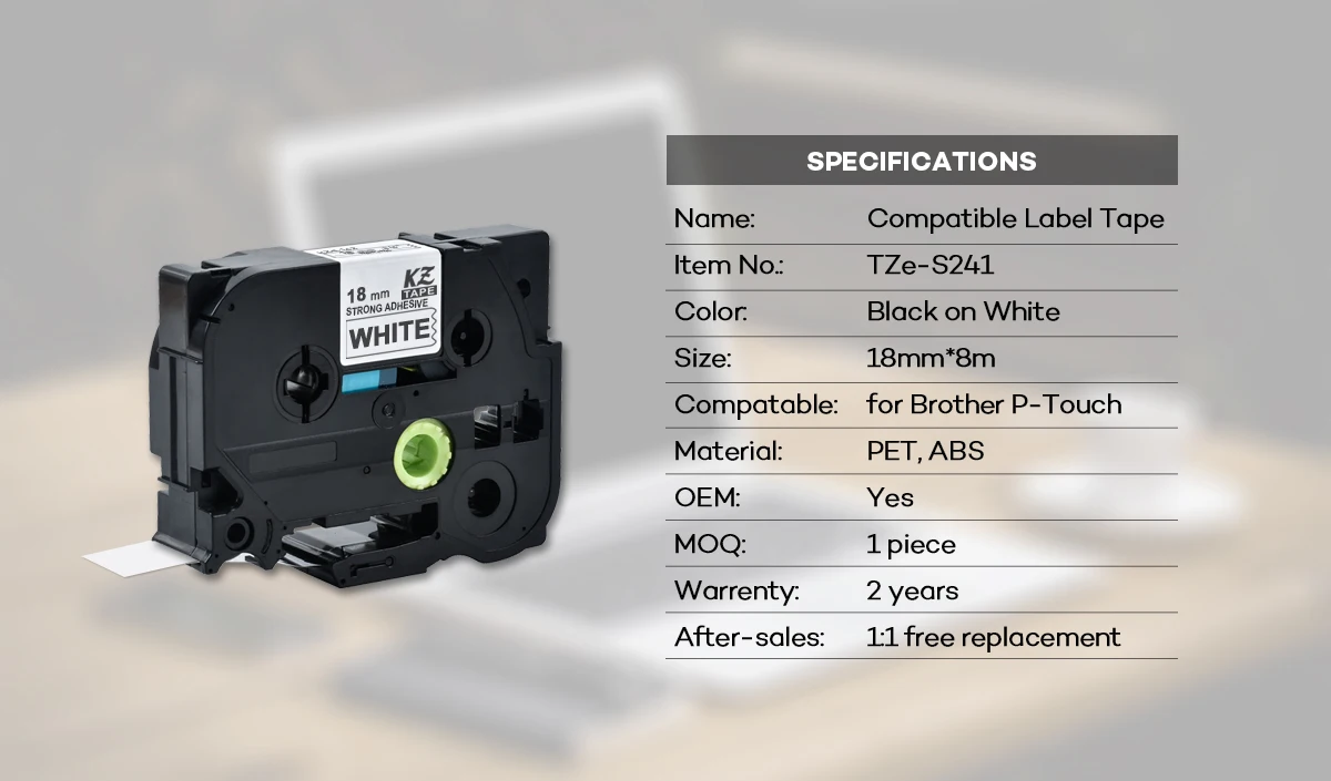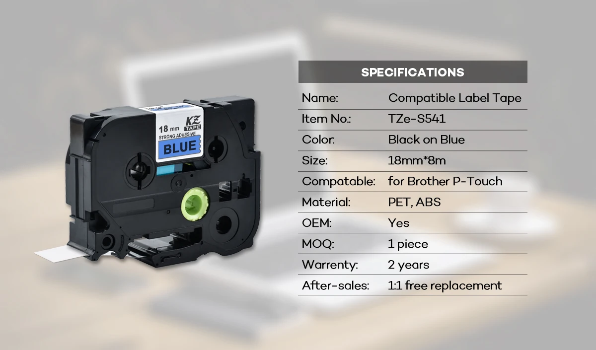 -Торговая марка: Kze лента-изделие: сильный клей TZe лента для маркировки-Номер модели: Tze S141 / Tze S241 / Tze S441 / Tze S541 / Tze S641 / Tze S741 / Tze SM941-Цвет: Черный на прозрачном/черном на белом/черный на красном/черный на голубом/черный на желтом/черном на зеленом/черном на матовом серебре-Размер: 18 мм x 8 м-Материал: ПЭТ, совместимость с ABS: для Brother P-touch