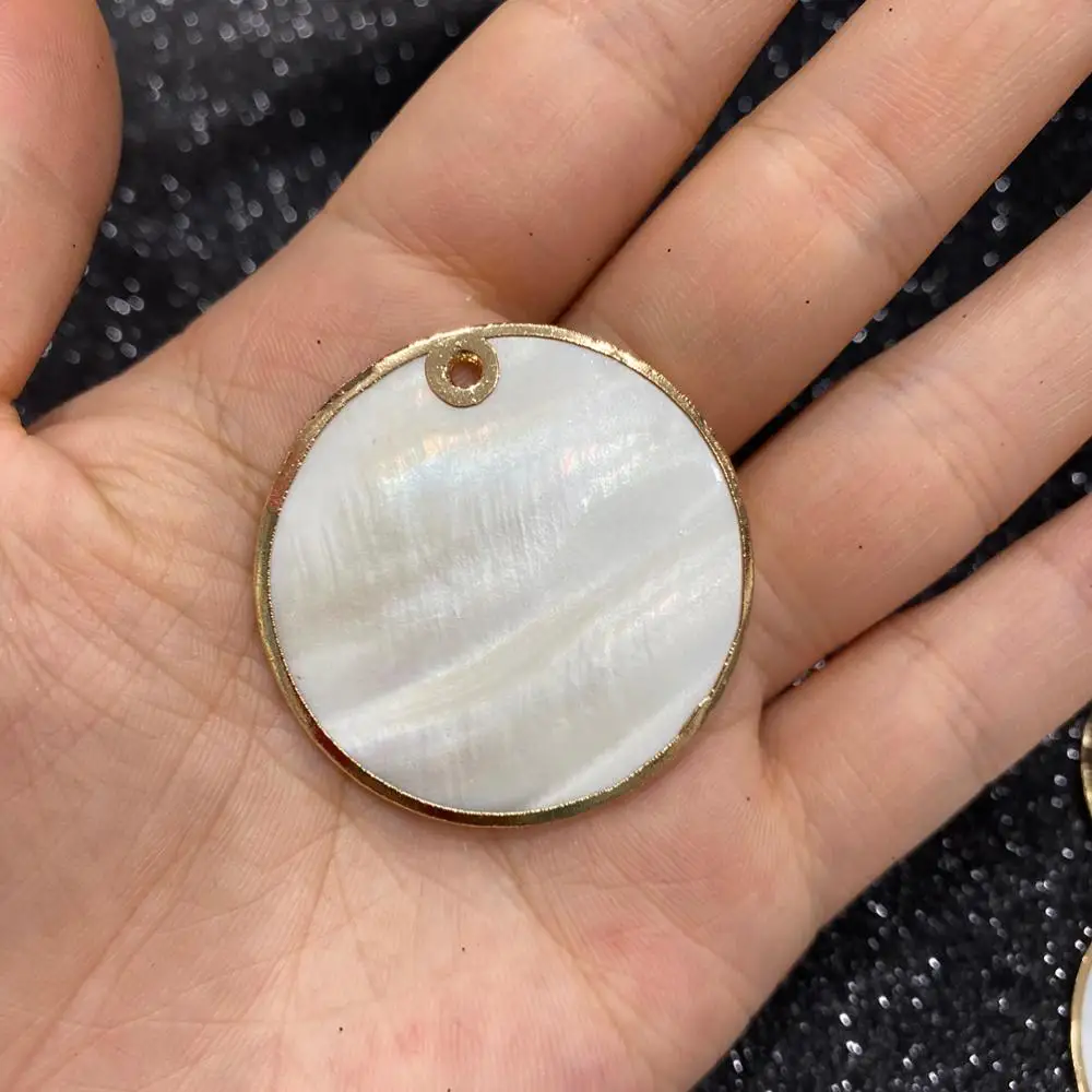 Подвеска из натуральной белой ракушки, круглая перламутровая, изыск...