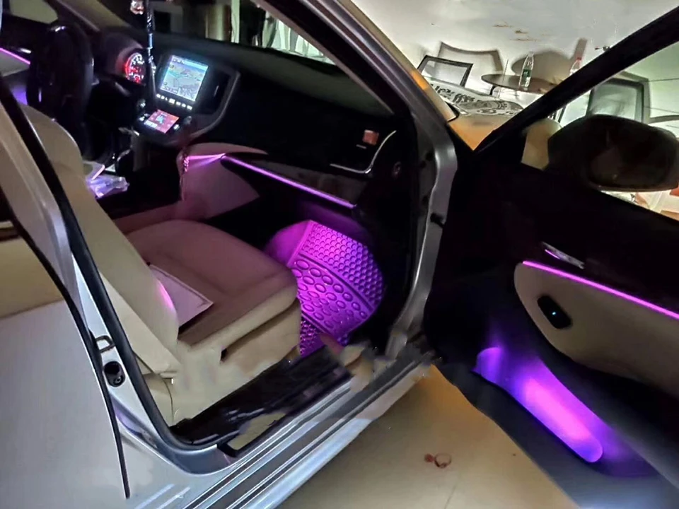 Особенности: 1) 100% Новый бренд 2) отлично подходит для украшения автомобиля, вечеринок, кемпинга, украшения бара и так далее 3) цвета RGB с несколькими режимами на выбор 4) меньше теплового излучения, низкое энергопотребление, длительный срок службы 5) 360 градусов для регулировки 6) Bluetooth подключение к телефону приложение управления. С чипом памяти 7) гибкий, может быть согнут в любой форме и разрезан на любую длину 8) 6 шт край атмосферная лампа с 4 шт пол ноги RGB светильник, полностью светильник ваш интерьер. Параметры: 1) Напряжение: 12 В постоянного тока 2) Управление приложением для телефона: подходит для iOS и Android 3) Рабочая температура: 20 °C до 60 °C 4) Удаленное расстояние в закрытом месте: прибл. 8-12 м 5) Длина оптоволоконной ленты: прибл. 8 м 6) светильник Цвет: разноцветный "Красный-зелёный-желтый