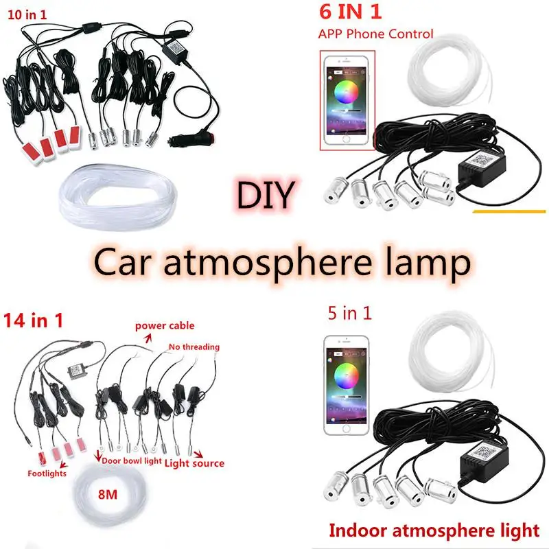 5, 6, 10, 14 в 1, универсальный rgb-контроллер, автомобильный окружающий светильник, автомобильный интерьерный светильник, украшение, светильник s, 8 м, EL, неоновая полоса, ночник, светильник s, 12 В