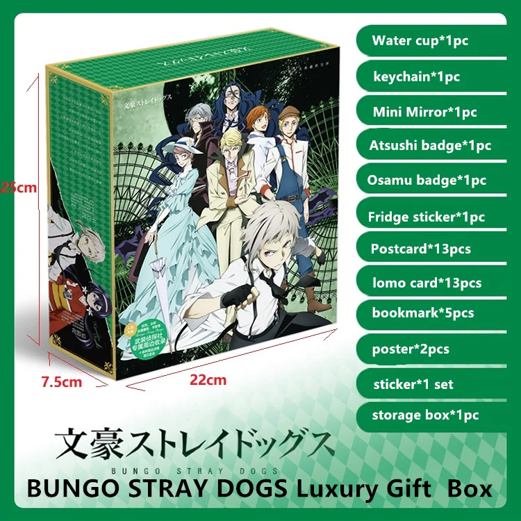 Подарочная коробка с аниме бродячие псы, включает в себя брелок, постер, брошь, открытку, зеркало, водяной Закладка чашка, стикер, коробка для хранения игрушек