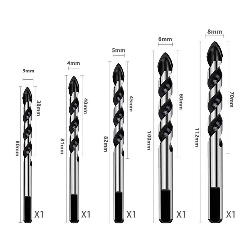 Набор сверл из карбида вольфрама для керамической плитки, бетона, кирпича, стекла, пластика и дерева, 5 шт.