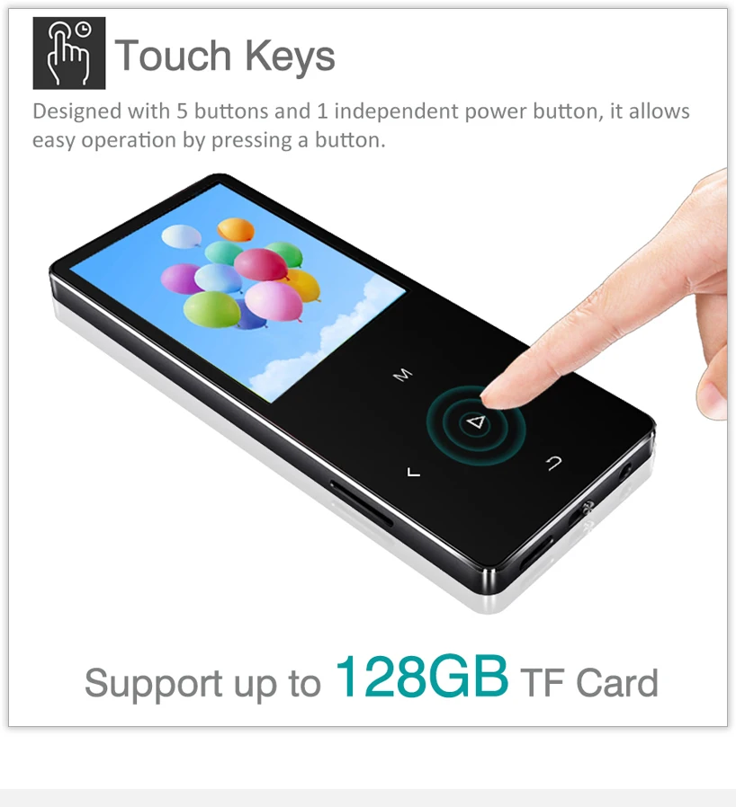 Музыкальный проигрыватель Hi-Fi, металлический портативный музыкальный плеер с Fm-радио, запись, встроенный динамик, сенсорная клавиша, Tft-экран 1,8 дюйма