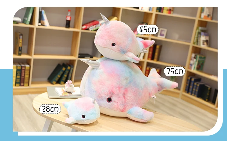 75 см милые красочные нарвальные плюшевые игрушки набивные киты Еди...