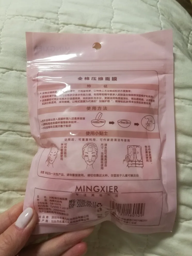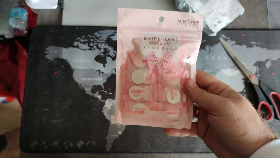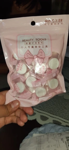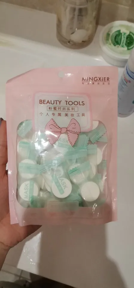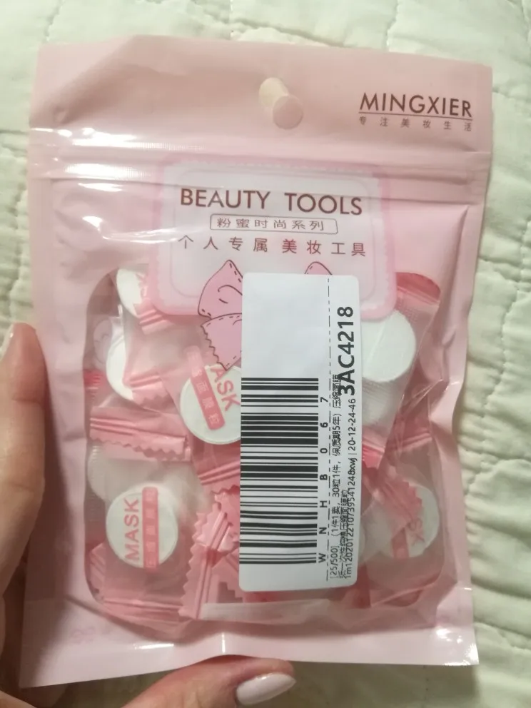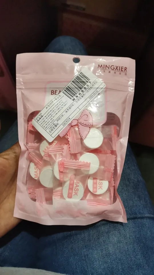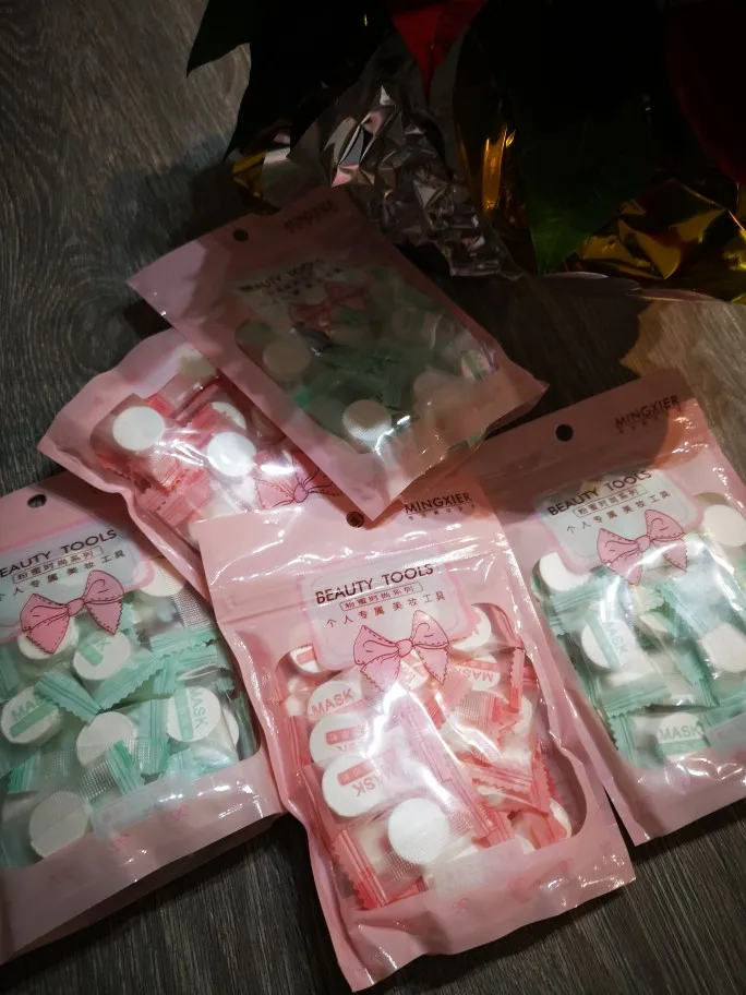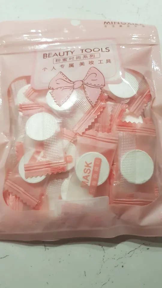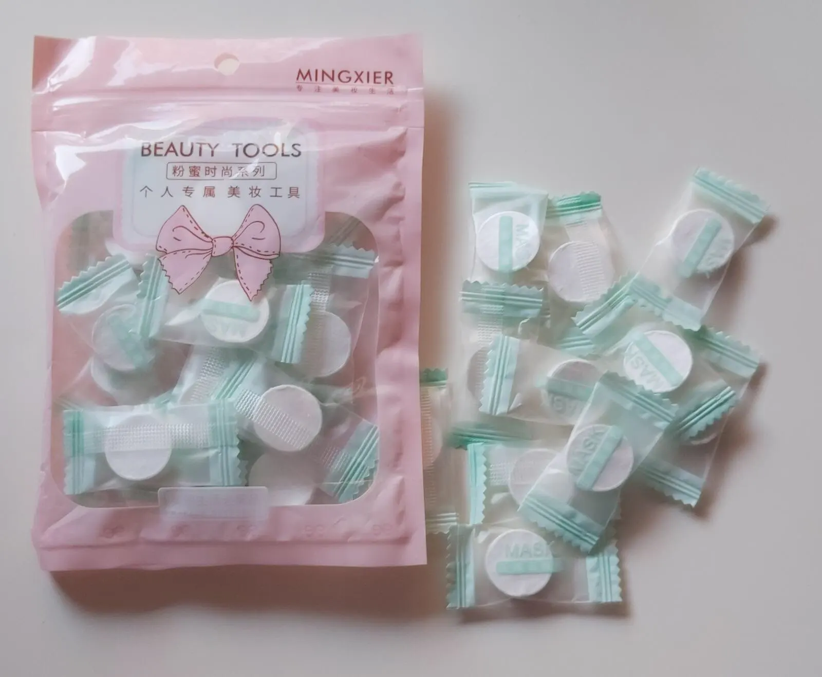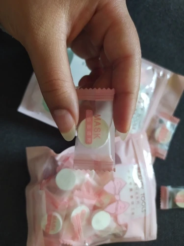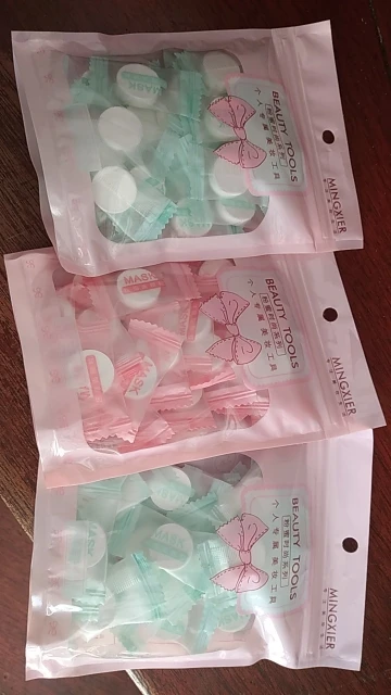 Первый раз решила пересчитать количество пришедшего товара и одной штучки не хватало. Для меня это не критично, но продавец должен быть внимательнее. Конечно, человеческий фактор никто не отменял, но бывает, что продавцы намеренно не докладывают по пару штук, а на тысячах единиц это выходит приличное количество. Упаковка маленькая. Каждая прессованная масочка в диаметре 2 см.