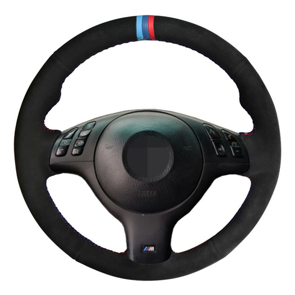 Чехол рулевого колеса автомобиля ручная строчка, черная натуральная кожа, замша для BMW E46 M3 E39 330i 540i 525i 530i 330Ci 2001 2002 2003