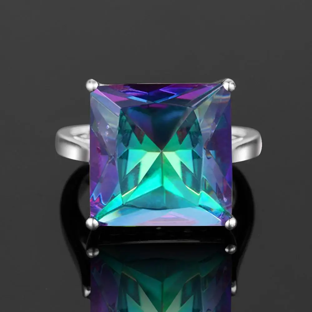 Бренд: SzjinaoТип камня: радужный топазРазмер основного камня: 15*15 ммЧеткость камня: VVSЦвет камня: ПрозрачныйФорма камня: квадратТип металла: серебро 925 пробы с покрытием из белого золотаВес изделия: 8,31 гПроисхождение камня: КитайУпаковка:1 * ткань для полировки серебра,1 * Изысканная Подарочная коробка,1 * Кольцо с мистическим топазом