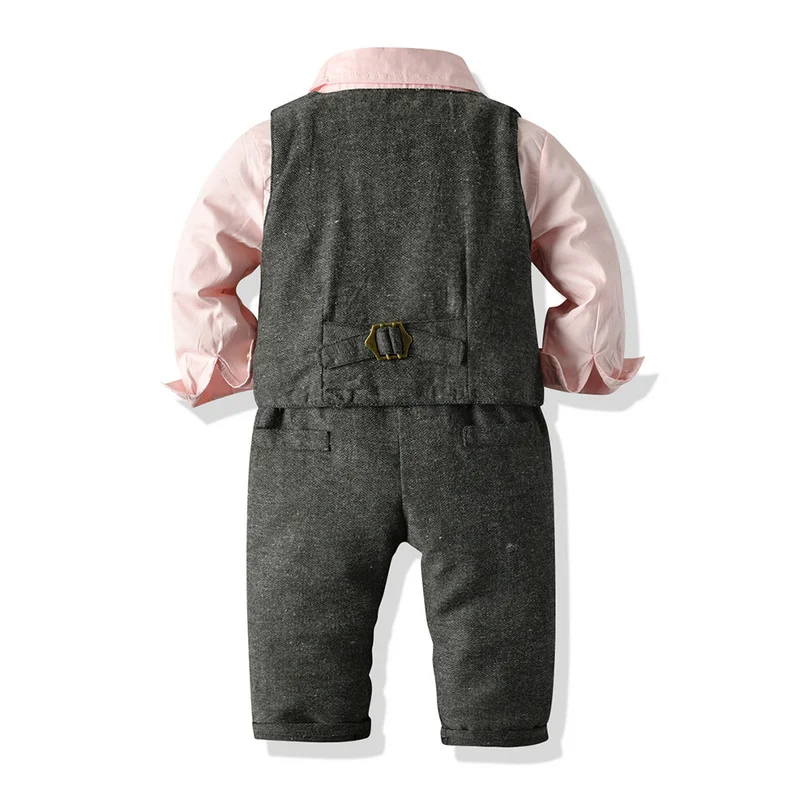 Комплект одежды для маленьких мальчиков, рубашка с длинным рукавом, галстук-бабочка, жилет и брюки, официальный комплект из 3 предметов