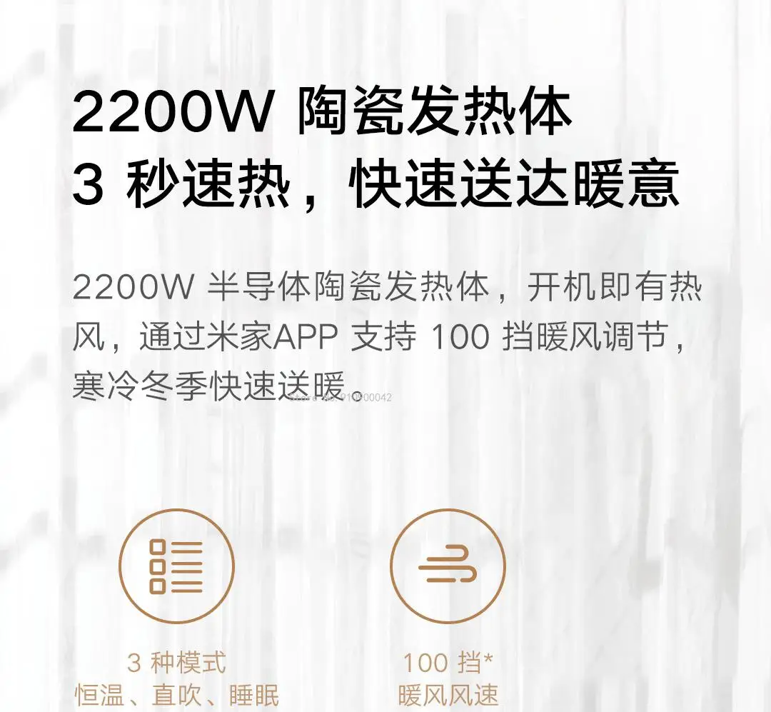 * Запатентованный Быстрый переключатель холодного и теплого воздуха, 2200 Вт, Поддержка приложения mijia