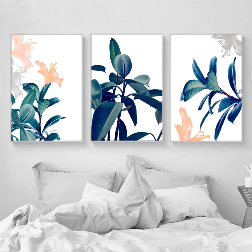 Картина на холсте, с изображением тропических листьев, зеленый, плакат растений