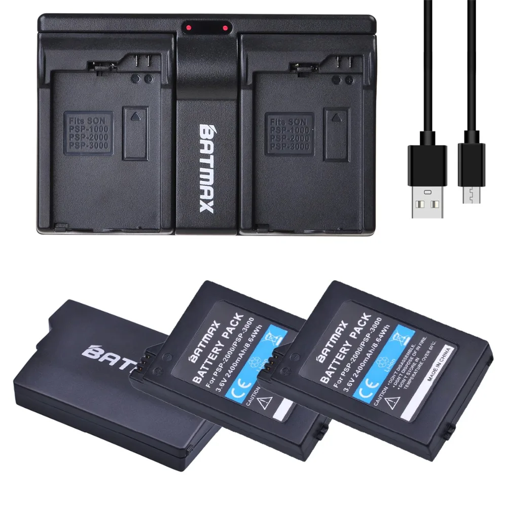 Аккумуляторная батарея Batmax 2400 мАч и двойное зарядное устройство USB для геймпада Sony PSP3000 PSP 2000 3000 для PlayStation Portable Controller