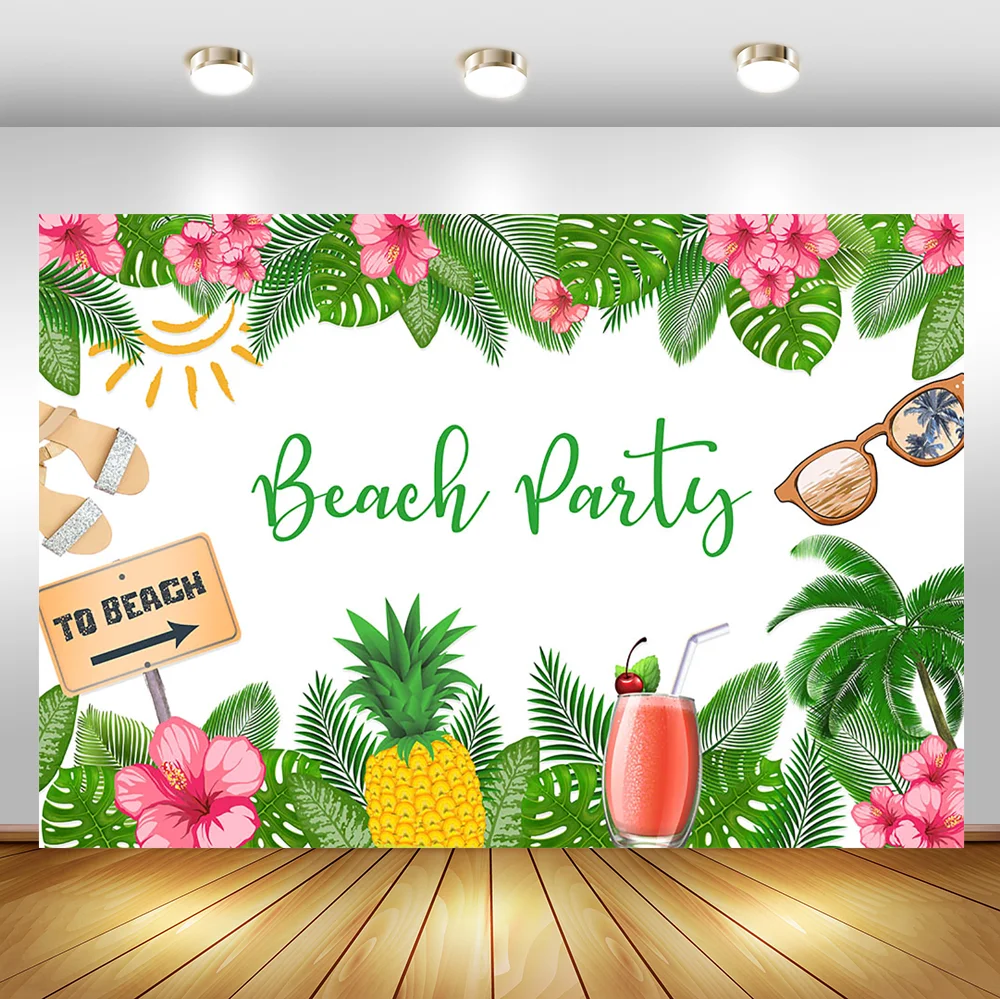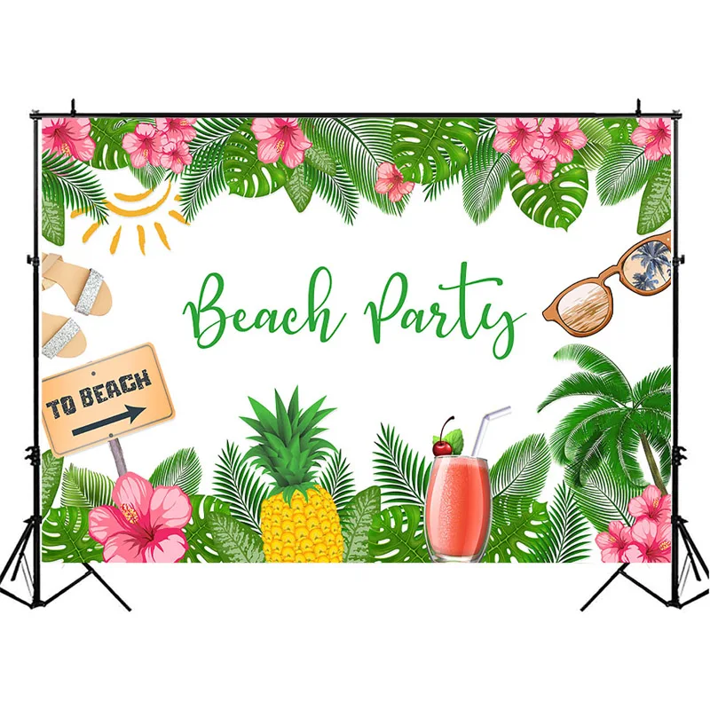 Летний Пляжный фон для дня рождения с нтройными фруктами, фон для фотосъемки с изображением ананаса, зеленых листьев, цветов, Фотофон
