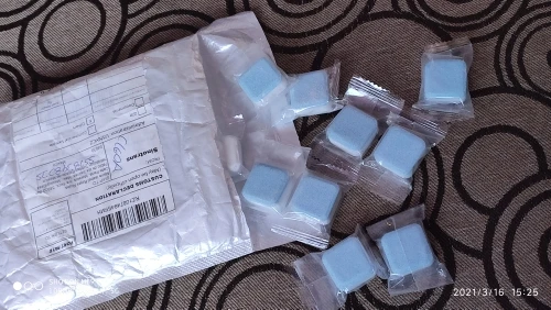 Продукт приобрел дезодорантные таблетки и чистящие средства для стирки. Его материал состоит в соответствии со спецификациями чистящих средств и дезодорантов, которые обеспечивают внутреннюю очистку бака стиральной машины. Белое изделие в индивидуальной упаковке каждой таблетки. 100% рекомендуемый продавец, описание товара соответствует тому, что было опубликовано, товар прибыл в Колумбию за 17 дней. Я попробую и дам рекомендацию по продукту после использования.