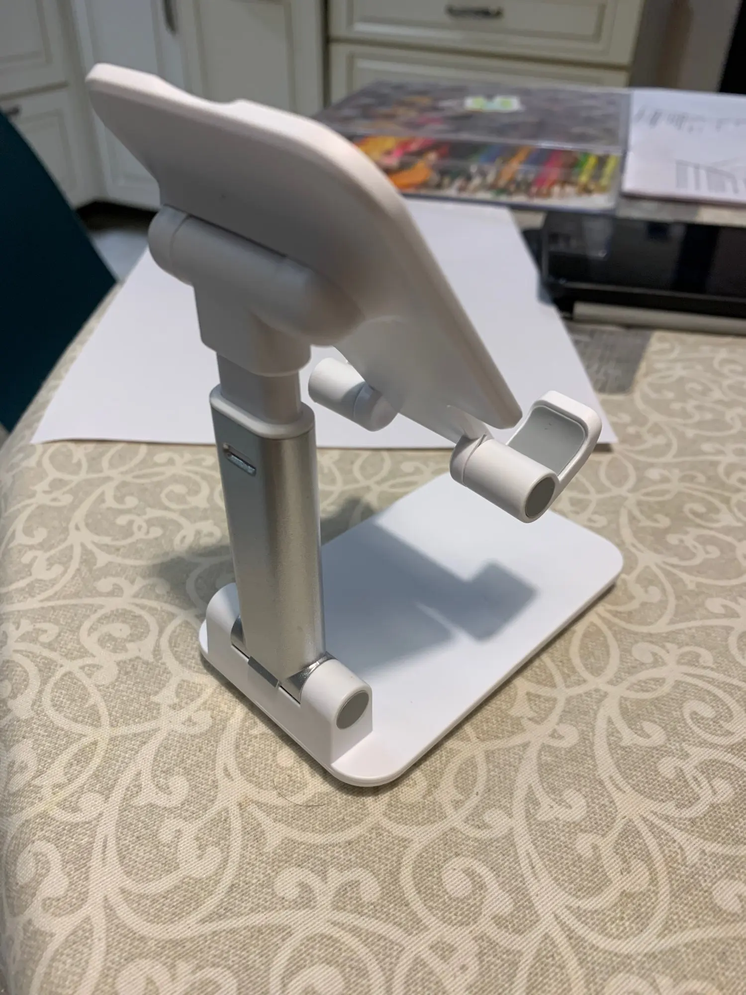 Подставка хорошо подходит для телефона, планшета. Делается выше, ниже, и так же меняет угол наклона.