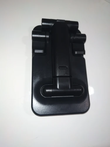Очень удобная подставка. Регулируется по высоте и наклону. Шарниры тугие, 0,5кг выдерживает. Нижние подставки на пружине, откидываются в рабочее положение сами. Конечно же основная часть едва дотянет до половины телефона, но и этого хватает, Благодаря резиновой накладке на ней и нижних лепестках телефон держится крепко, от вибрации не упадет.