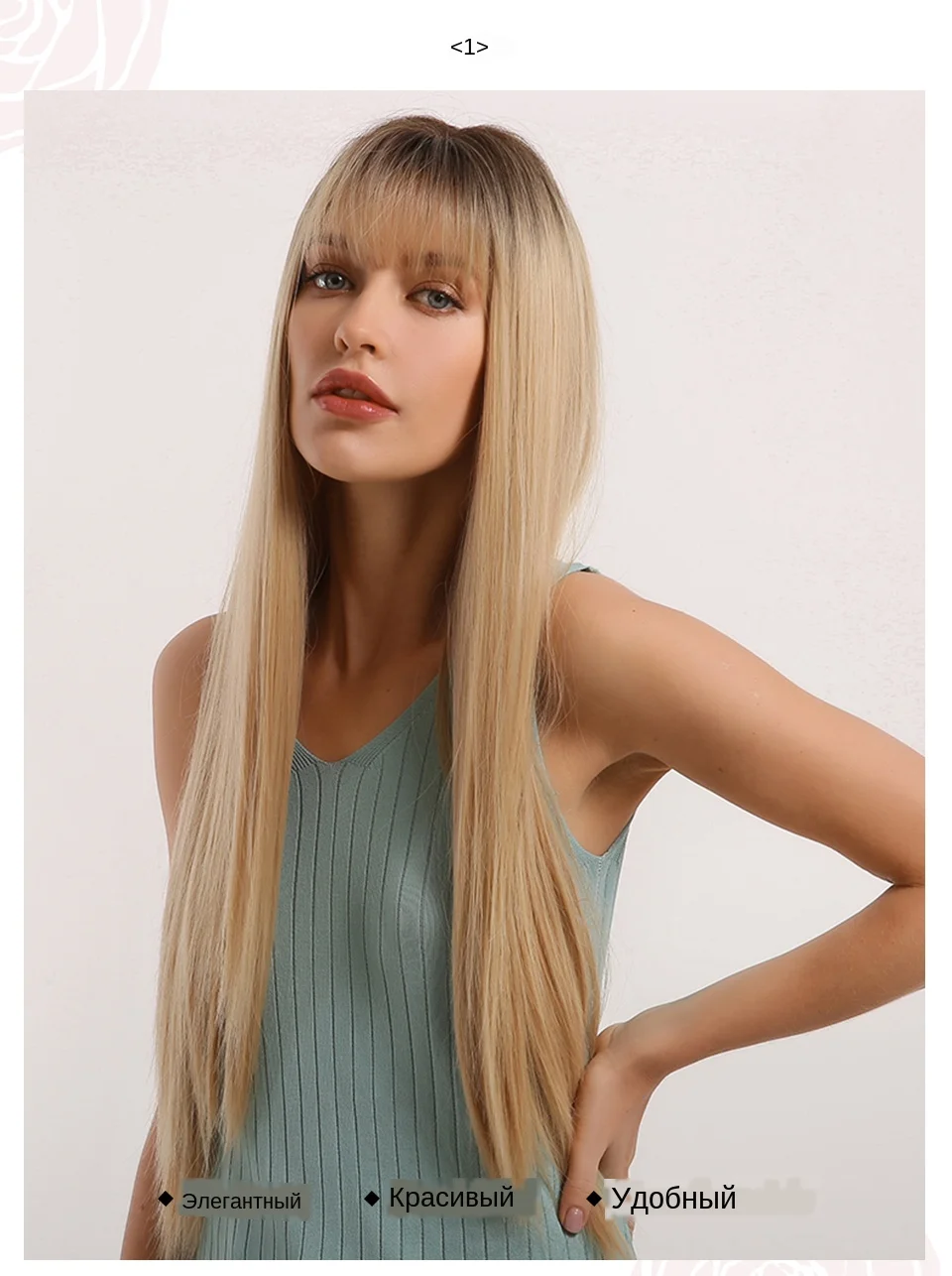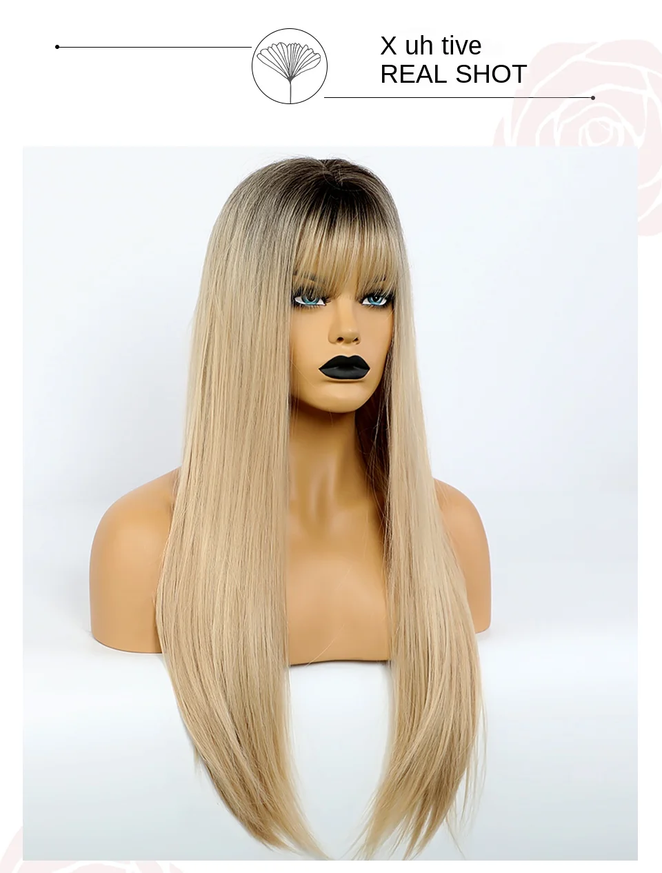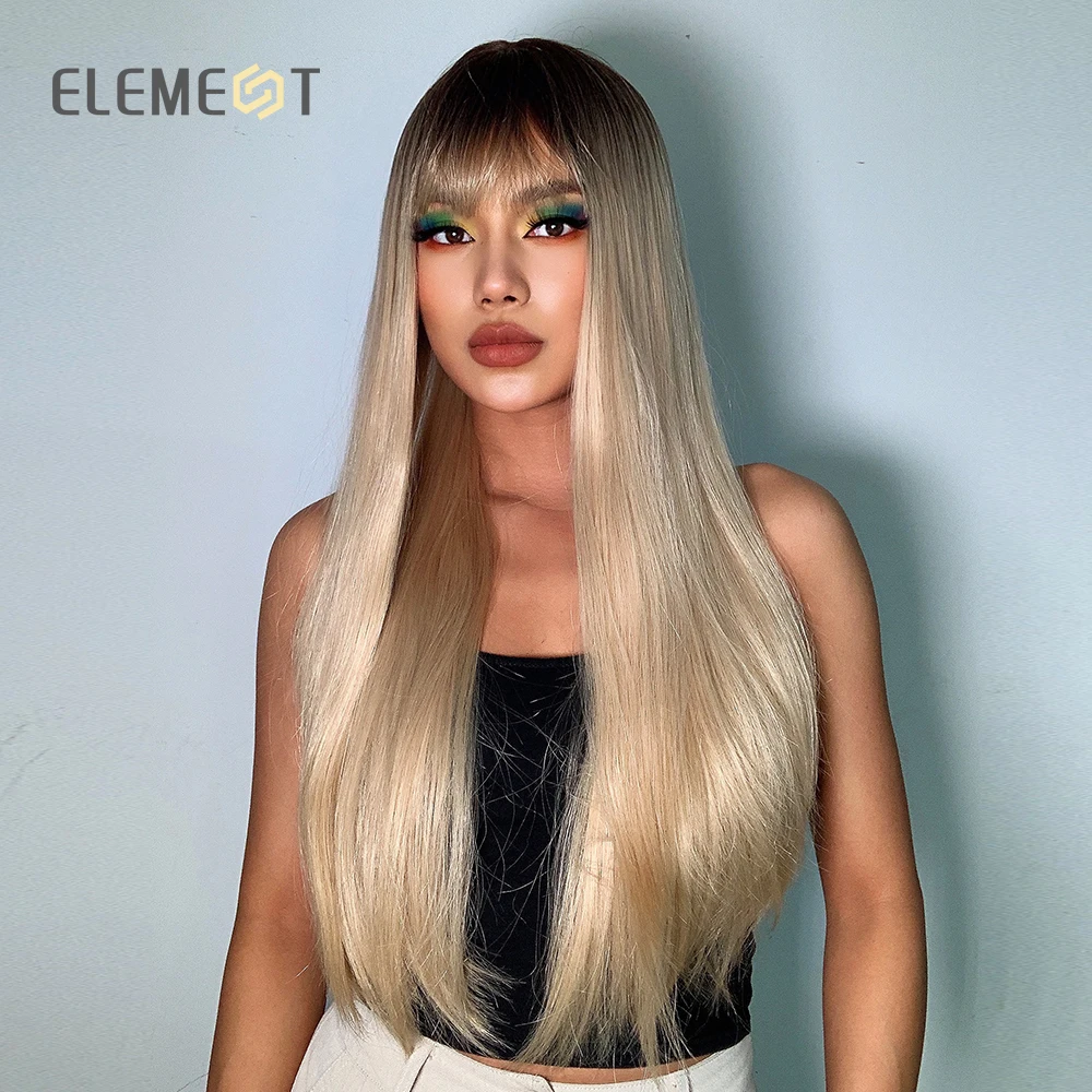 Парик светлый Element с темными корнями и эффектом омбре, с челкой, длинный Синтетический прямой косплей для вечерние, Женский ежедневный парик