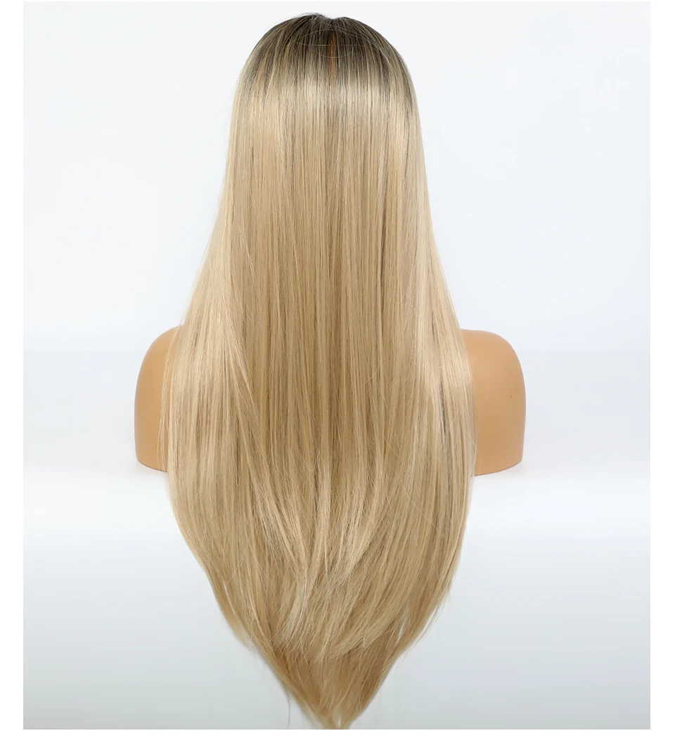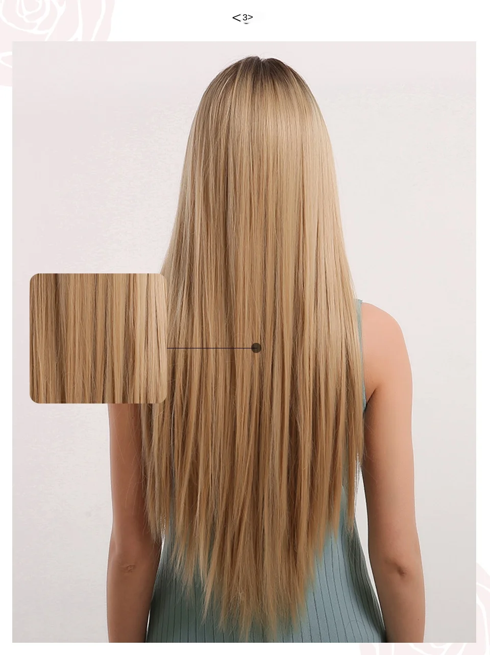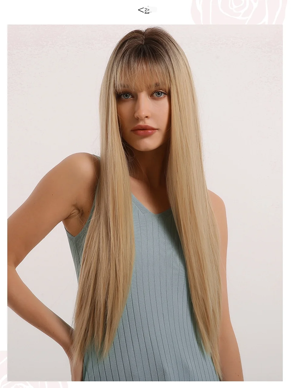 Парик светлый Element с темными корнями и эффектом омбре, с челкой, длинный Синтетический прямой косплей для вечерние, Женский ежедневный парик