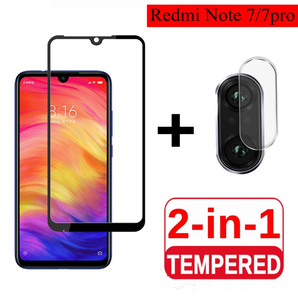 Защитное стекло 2 в 1 для Xiaomi Redmi Note 7, 8 pro, 8T, 9S, защита экрана камеры