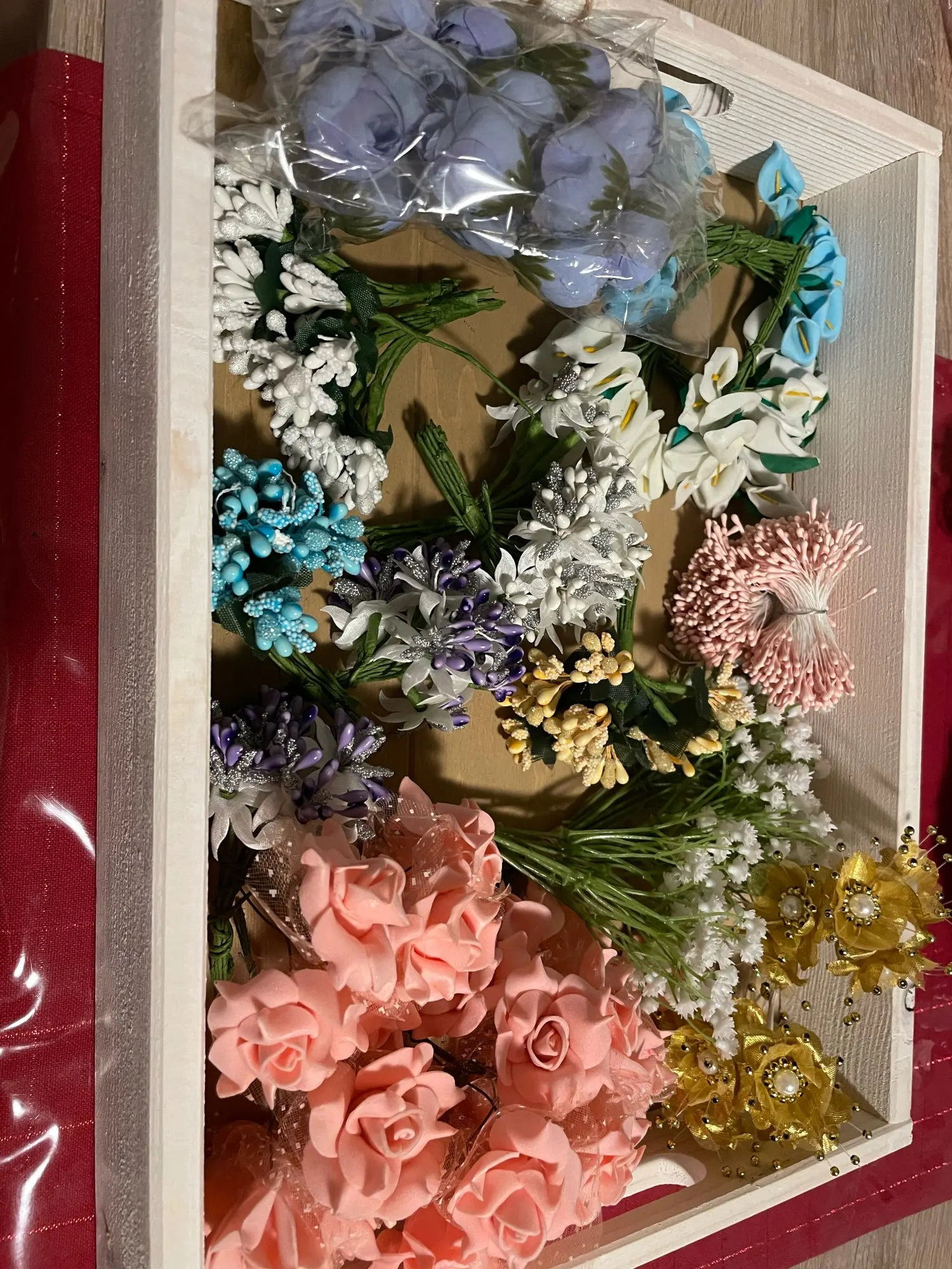 В восторге от этой покупки, хорошее качество для этих пластиковых цветов, маленькие цветы не были подобраны. Я заказал набор из 3 предметов, чтобы смешать их с другими цветами, но для изготовления качественного букета это займет больше времени. Я обязательно буду рекомендовать. Товар был доставлен в течение 2-3 недель.