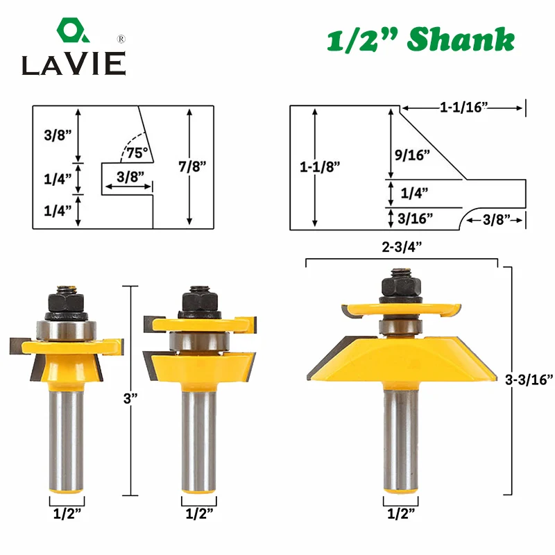 НАБОР КОНЦЕВЫХ ФРЕЗ LA VIE, 3 шт., 12 мм, 12 дюйма