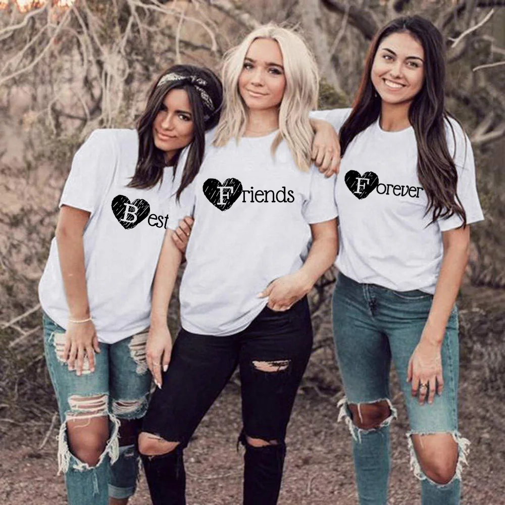 1 шт., женская футболка с надписью Best Friend Forever BFF, летняя футболка с короткими рукавами, одинаковые футболки для друзей и сестер