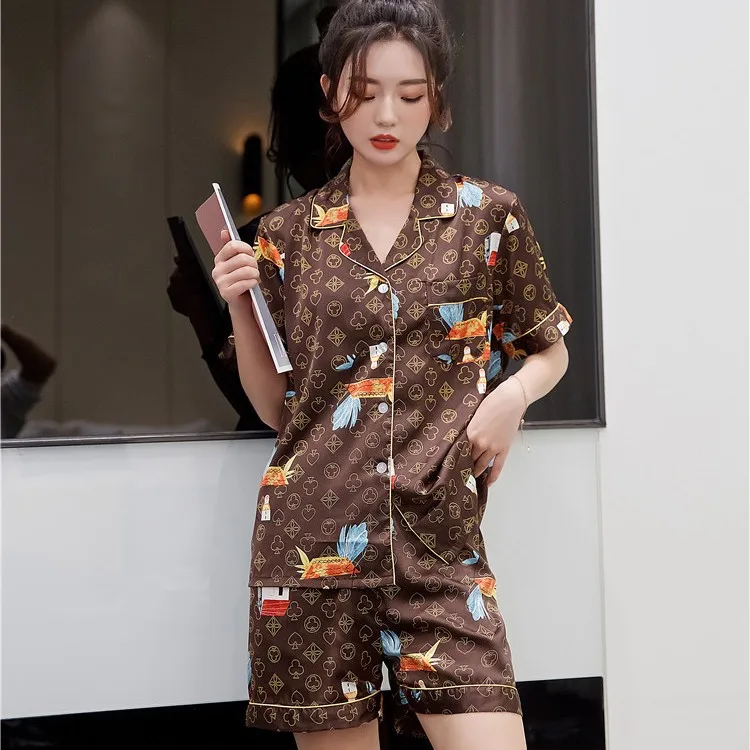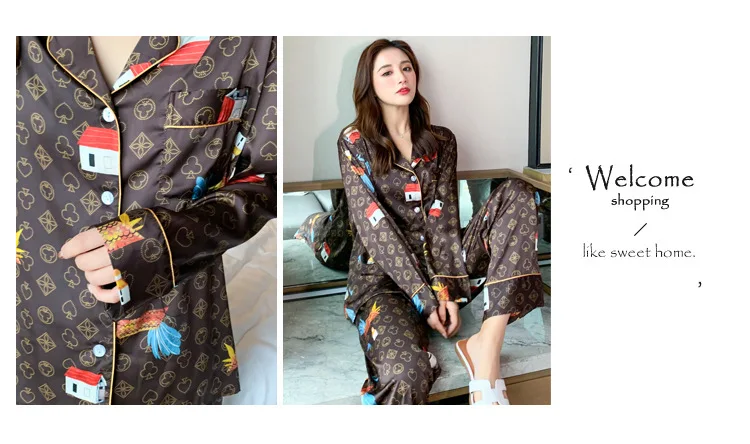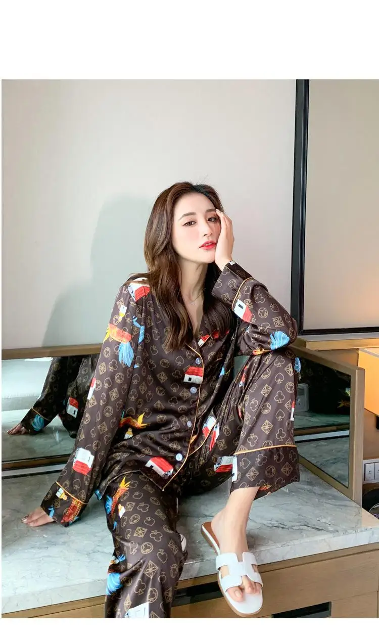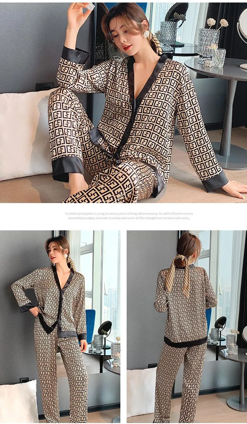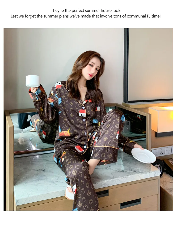 Комплект пижамный женский из 2 предметов, атласный, с принтом