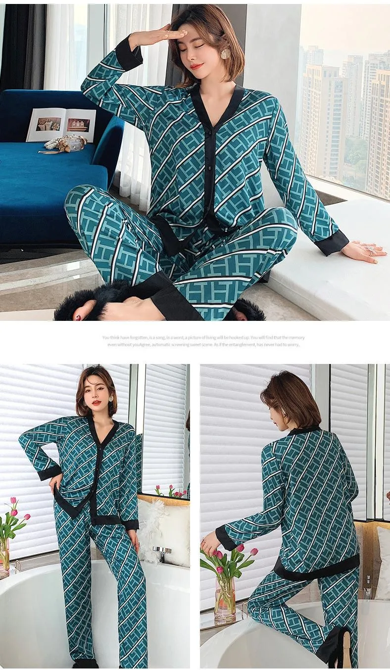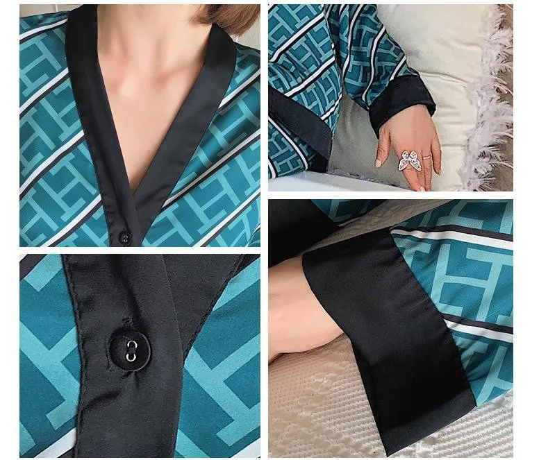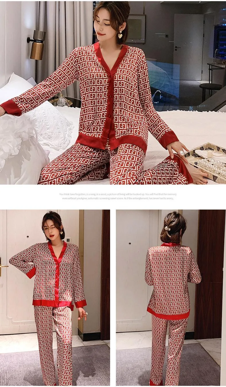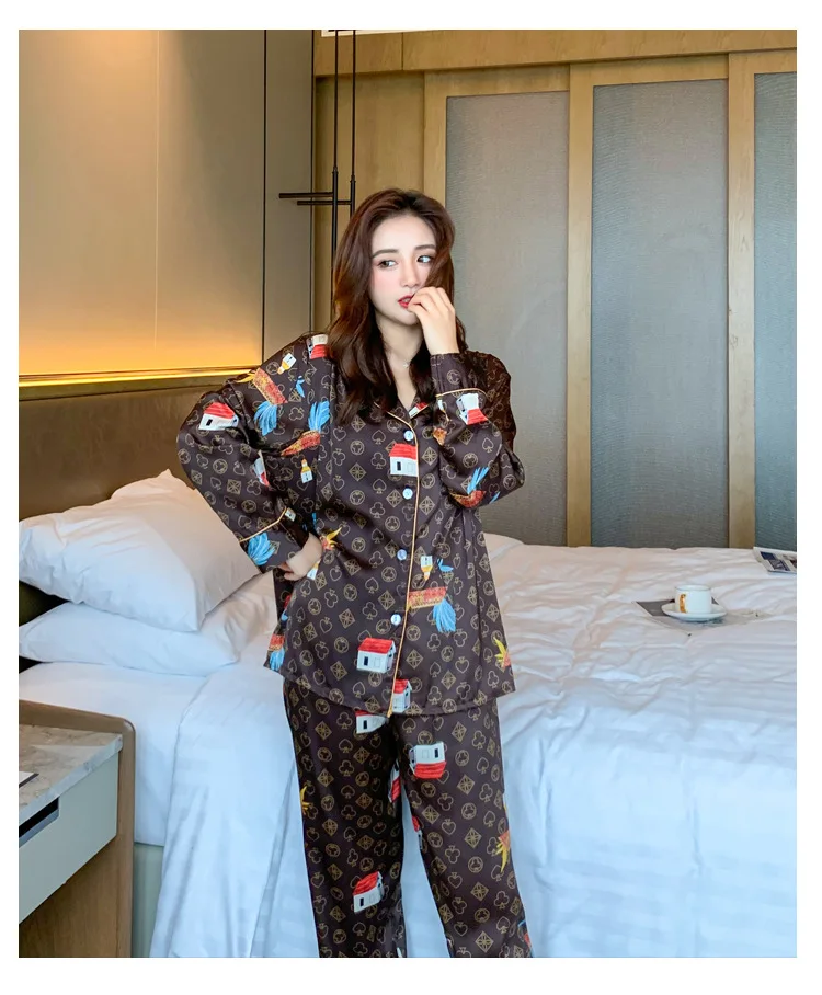 Комплект пижамный женский из 2 предметов, атласный, с принтом