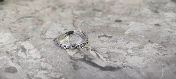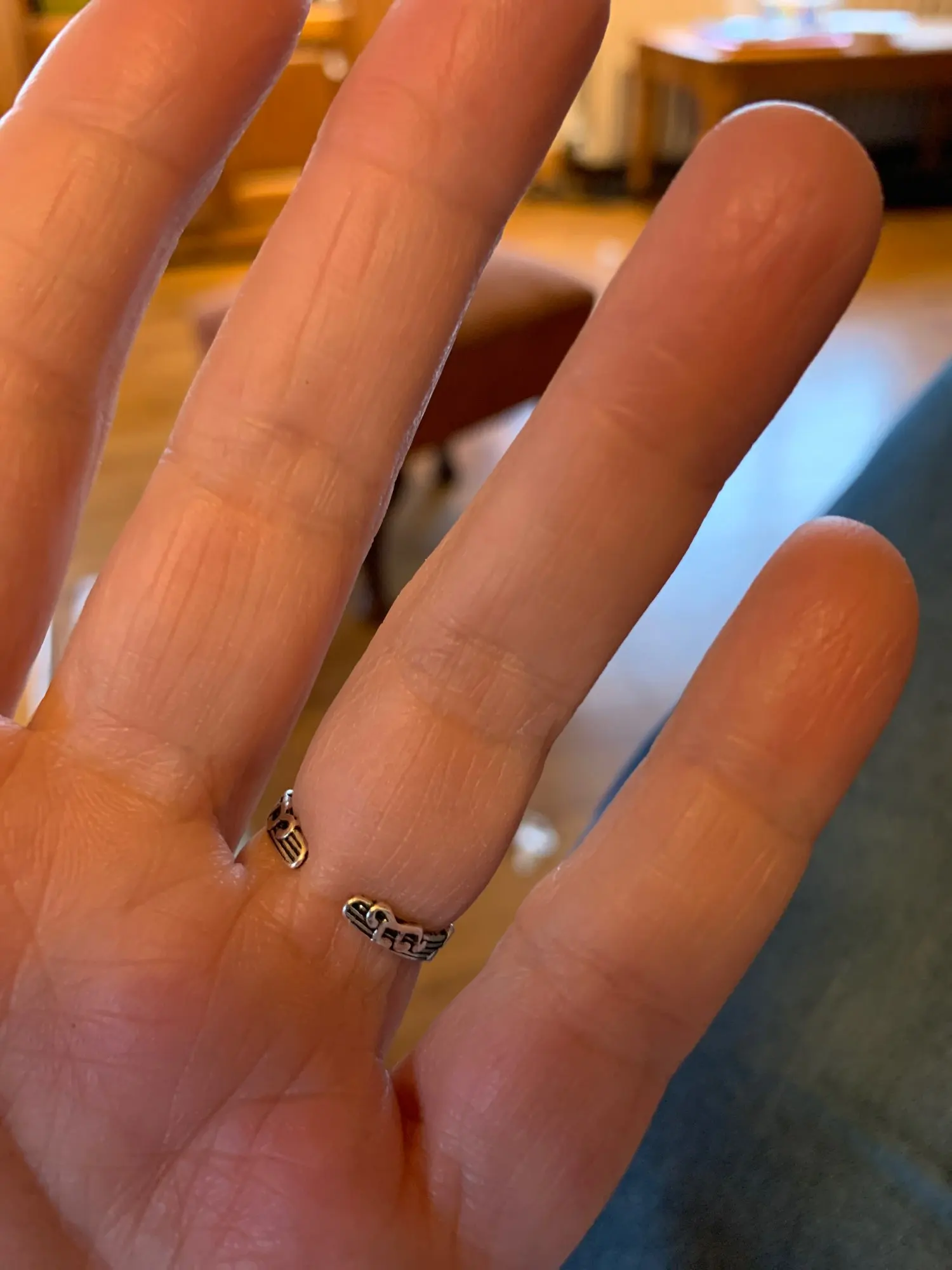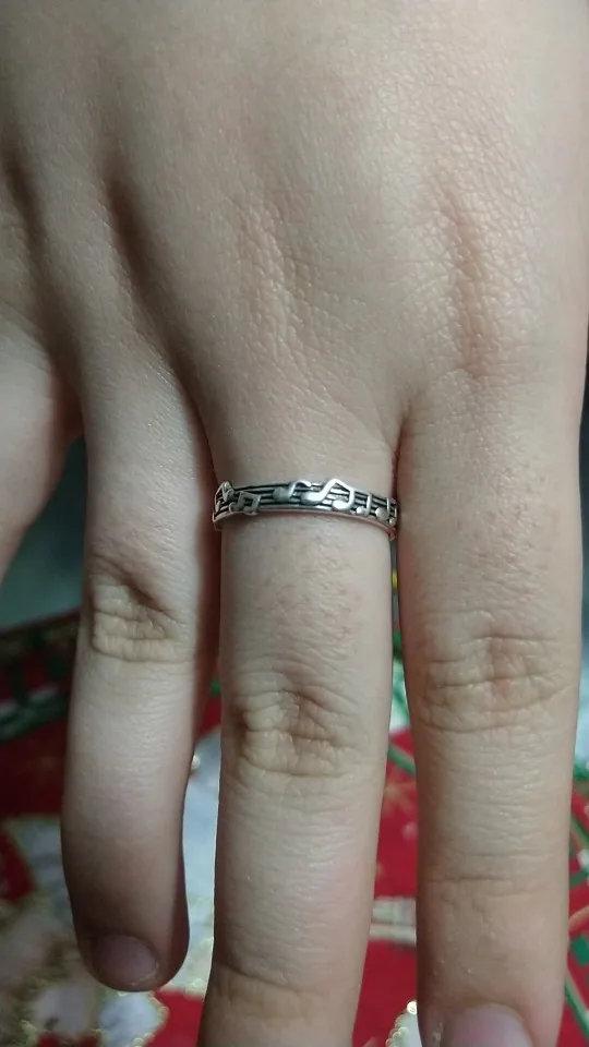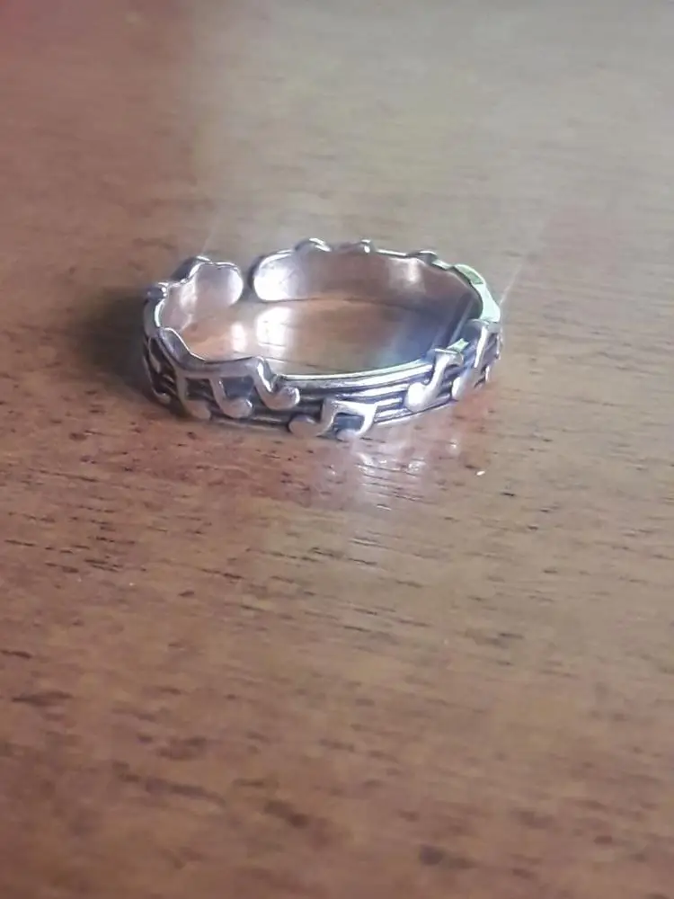 Заказ пришёл очень быстро. Колечко хорошо обработано. Нотки маленькие надо приглядываться. Смотрится очень элегантно. Радует, что оно регулируется (раздвигается) можно на любой свободны палец одеть.