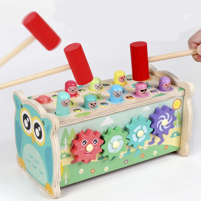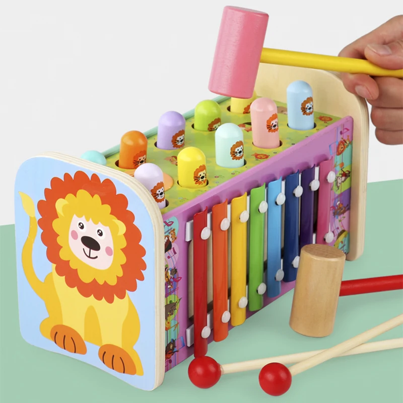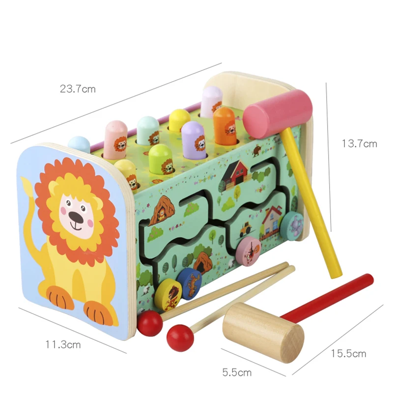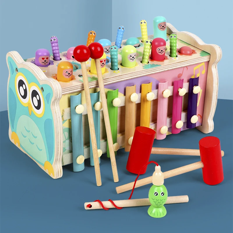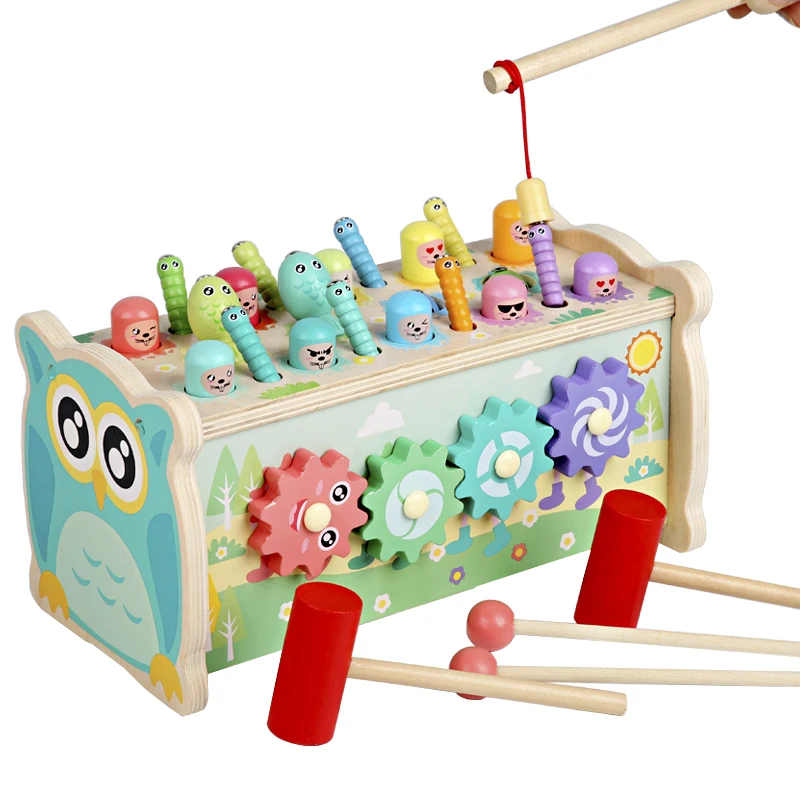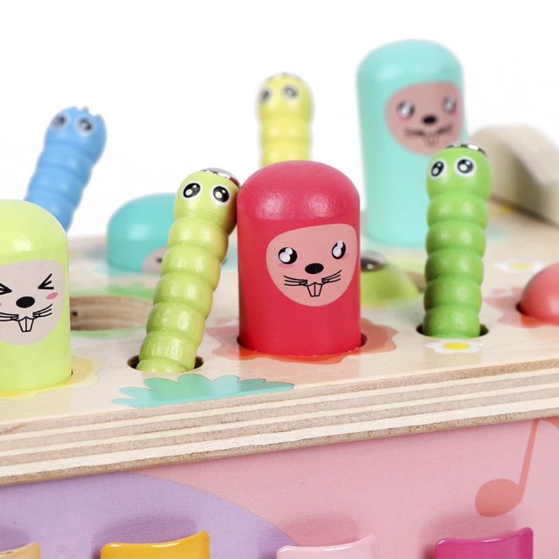 Детская деревянная развивающая игрушка, мультяшный динозавр Монтессори, бить суслика, игра, Магнитная рыбалка, поймать червячка для мальчиков и девочек, детские игрушки