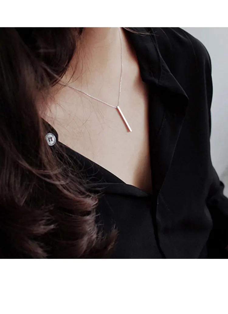 Минимализм F.I.N.S, корейское Серебро S925 пробы, простая цепочка до ключиц, геометрический квадратный стержень, Серебряный кулон, ожерелье, 925 ювелирные изделия