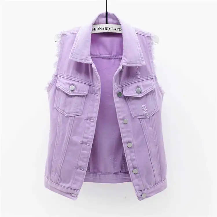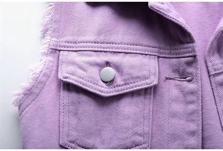 Новинка 2021, модный фиолетовый короткий джинсовый жилет, Женский О...