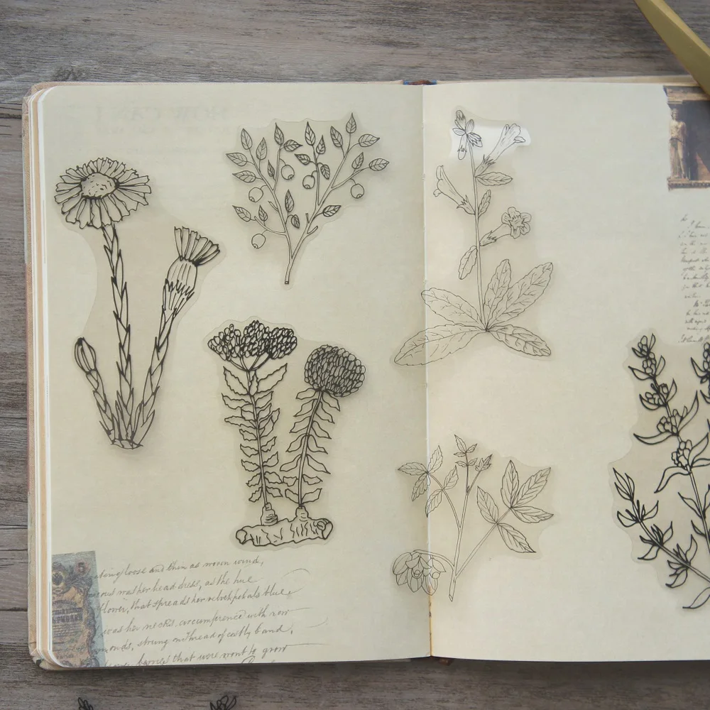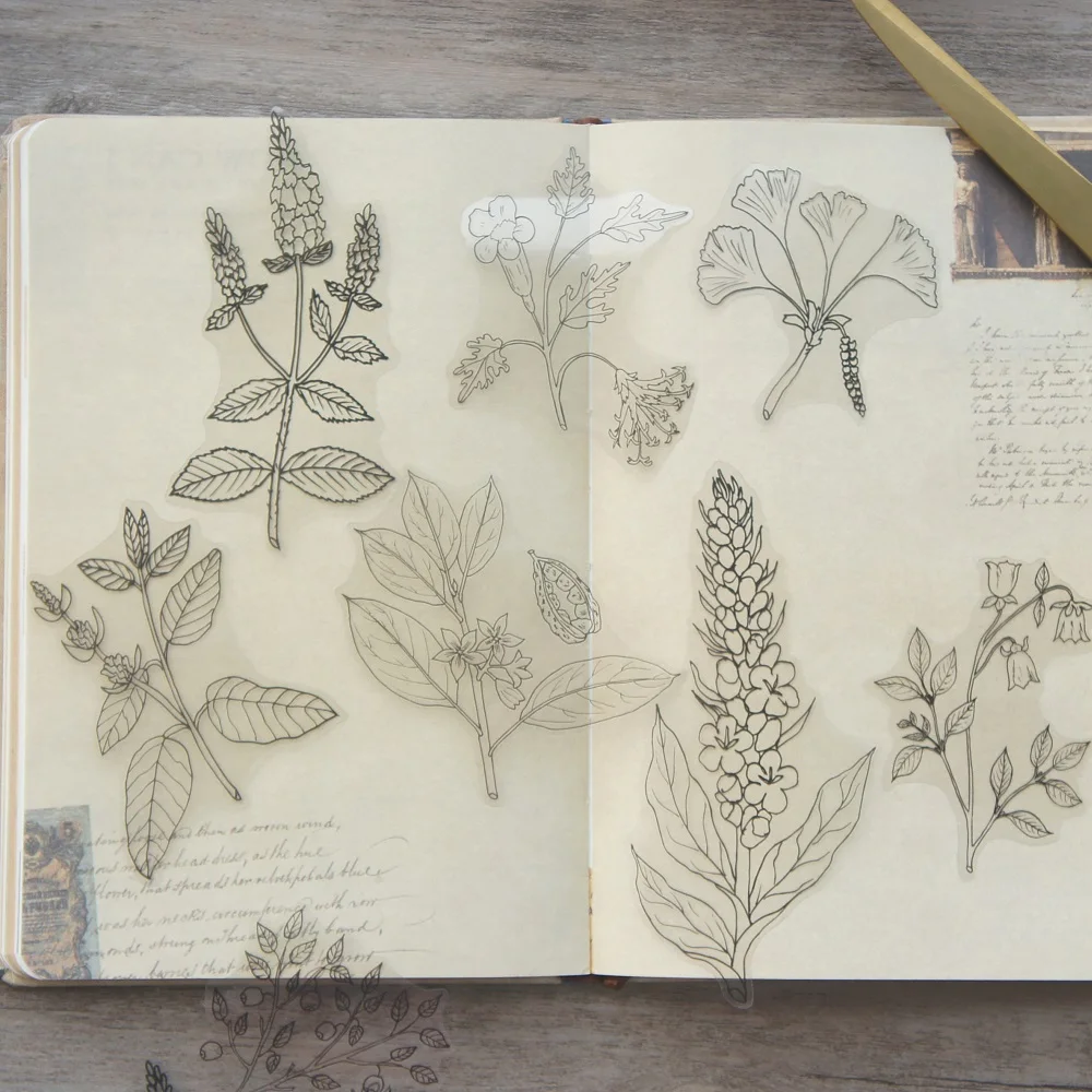 38 шт., прозрачные наклейки в виде натуральных цветов для скрапбукинга