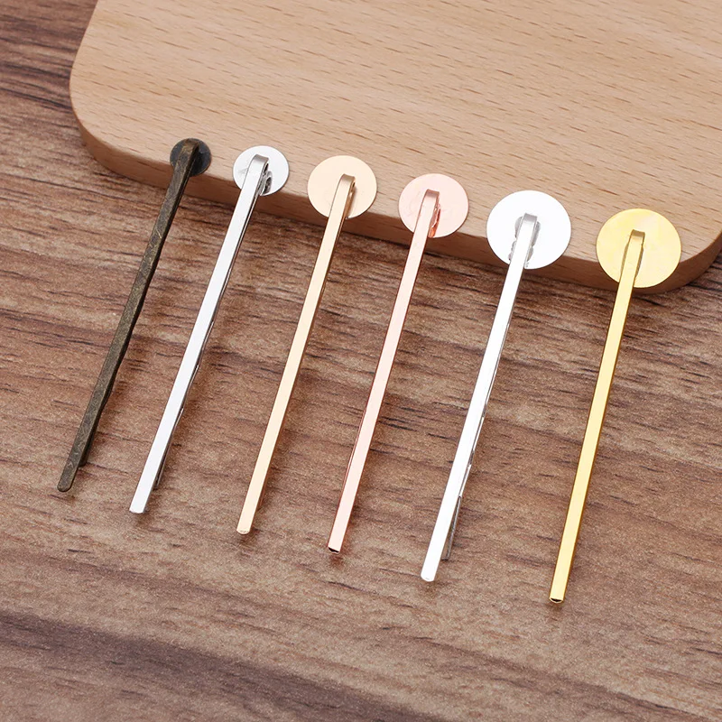 Заколки для волос 20 шт.лот, основа, 55 мм, заколки-невидимки с плоской круглой клеевой подкладкой 6-8-10-12 мм для изготовления украшений сделай сам, шпильки для волос