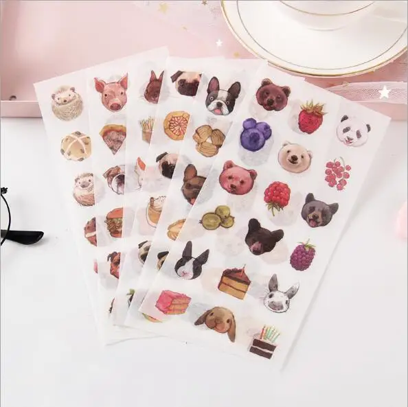 6 листов милый Животные цветочный наклейки журнал Декоративные Канц...
