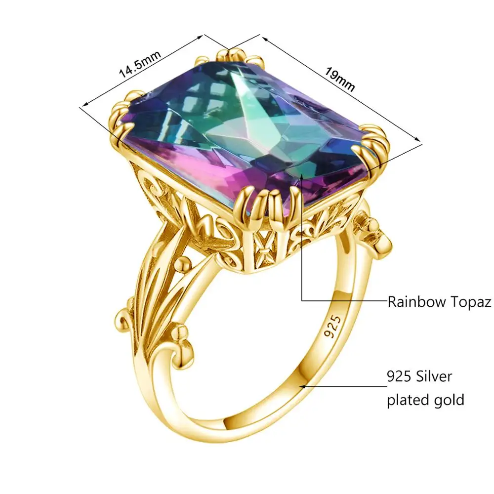 Бренд: Rosewood StoryТип камня: синтетический Радужный топазОсновной камень Вес Размеры: 14,5*19 ммЧеткость камня: VVSЦвет камня: ПрозрачныйФорма камня: SqureТип металла: твердый 925 пробы Серебряный + 14K позолоченныйMeatal Цвет: Желтое золотоТовар Вес: 5,5 гДоступные размеры кольца: США #5,#6, #7,#8,#9,#10Упаковка:1 * Серебряная полировальная ткань,1 * Изысканная Подарочная коробка,1 * MysticTopaz драгоценный камень кольцо