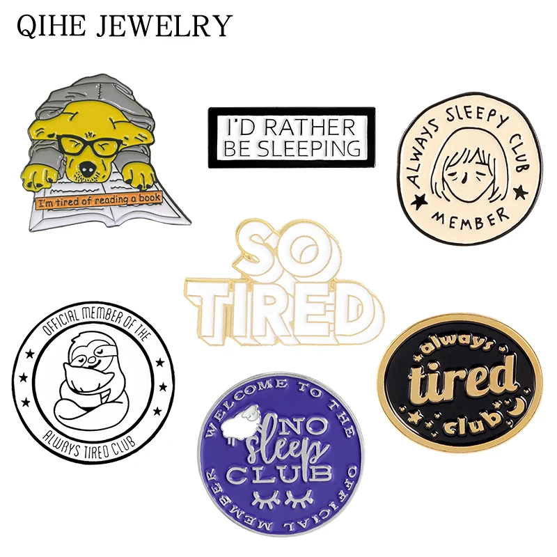 Черная эмалированная булавка на заказ, всегда уставшие Клубные брош...