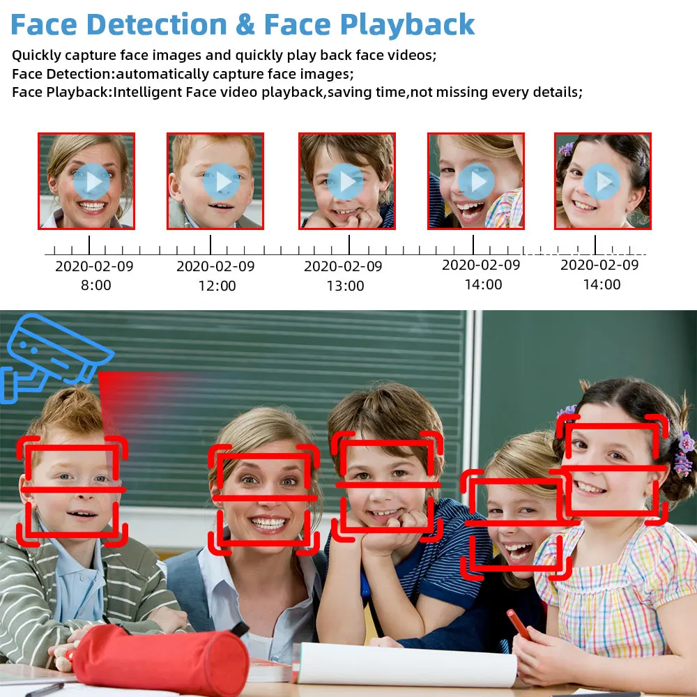 Распознавание лица, воспроизведение лица и запись лица; Быстрое снятие изображений лица и быстрое воспроизведение видео лица; Распознавание лица: автоматическое снятие изображений лица; Воспроизведение лица: интеллектуальное воспроизведение видео лица, экономия времени, не пропустите все детали;