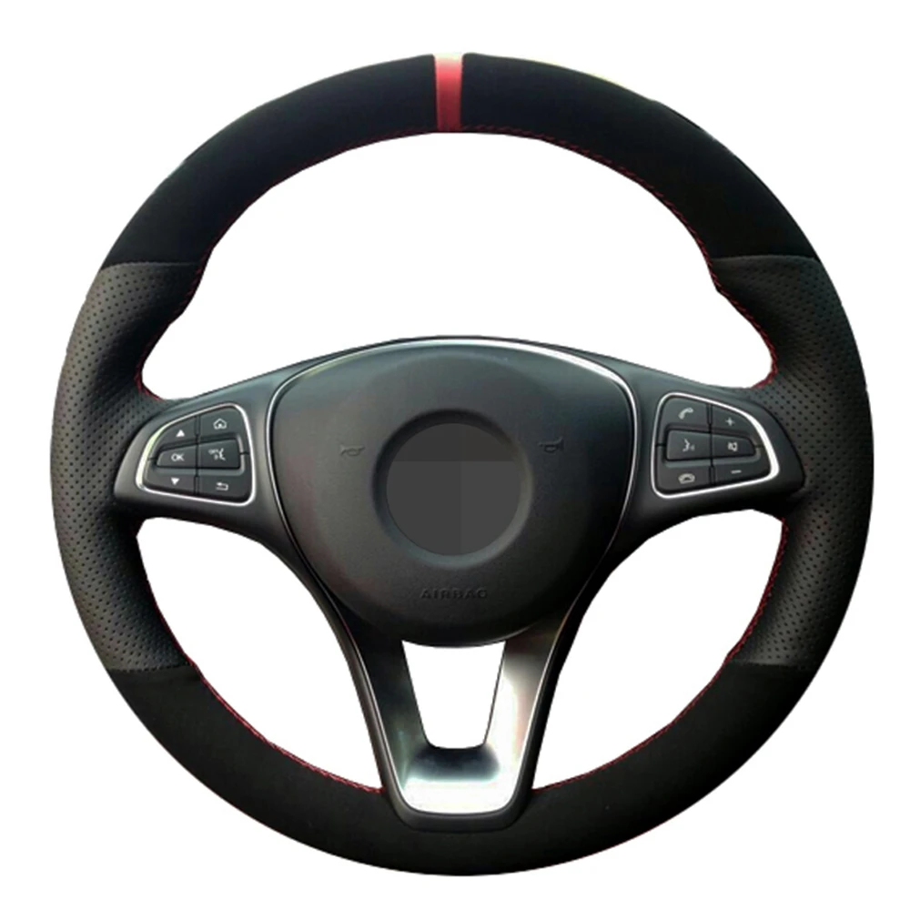 Для Mercedes-Benz C180, C200, W205, C300, B200, натуральная замша, черный, красный маркер, чехол рулевого колеса автомобиля
