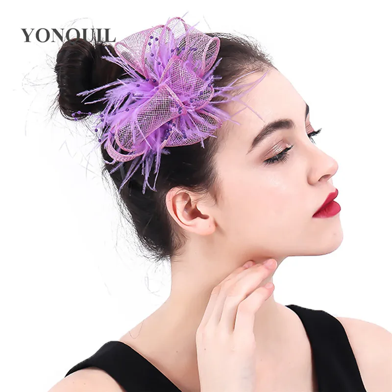 Светильник фиолетовый Sinamay Пряжа невесты головные уборы; Свадебная обувь; Женская обувь; Обувь с чародей Женские аксессуары для волос невесты элегантное брак вечерние головной убор зажим