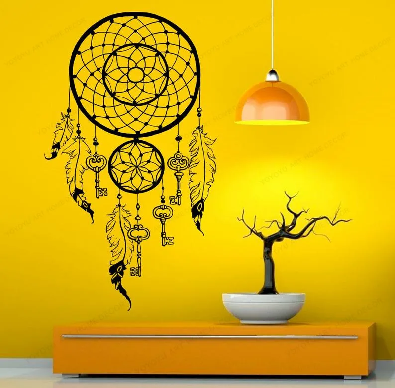 Ловец снов, Виниловая наклейка на стену, перо для спальни, наклейка...