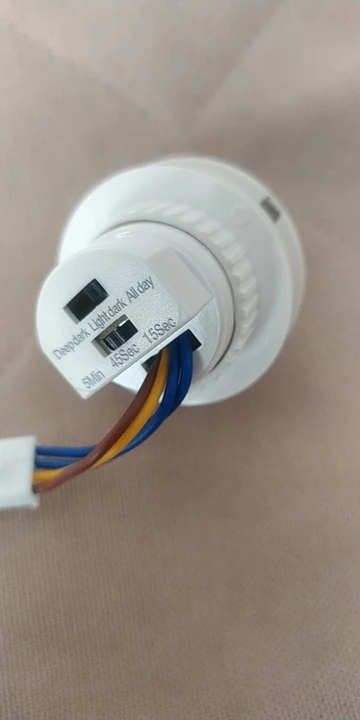 Самый маленький инфракрасный датчик 220 В с регулировкой яркости и времени. Очень удобно для компактной установки.