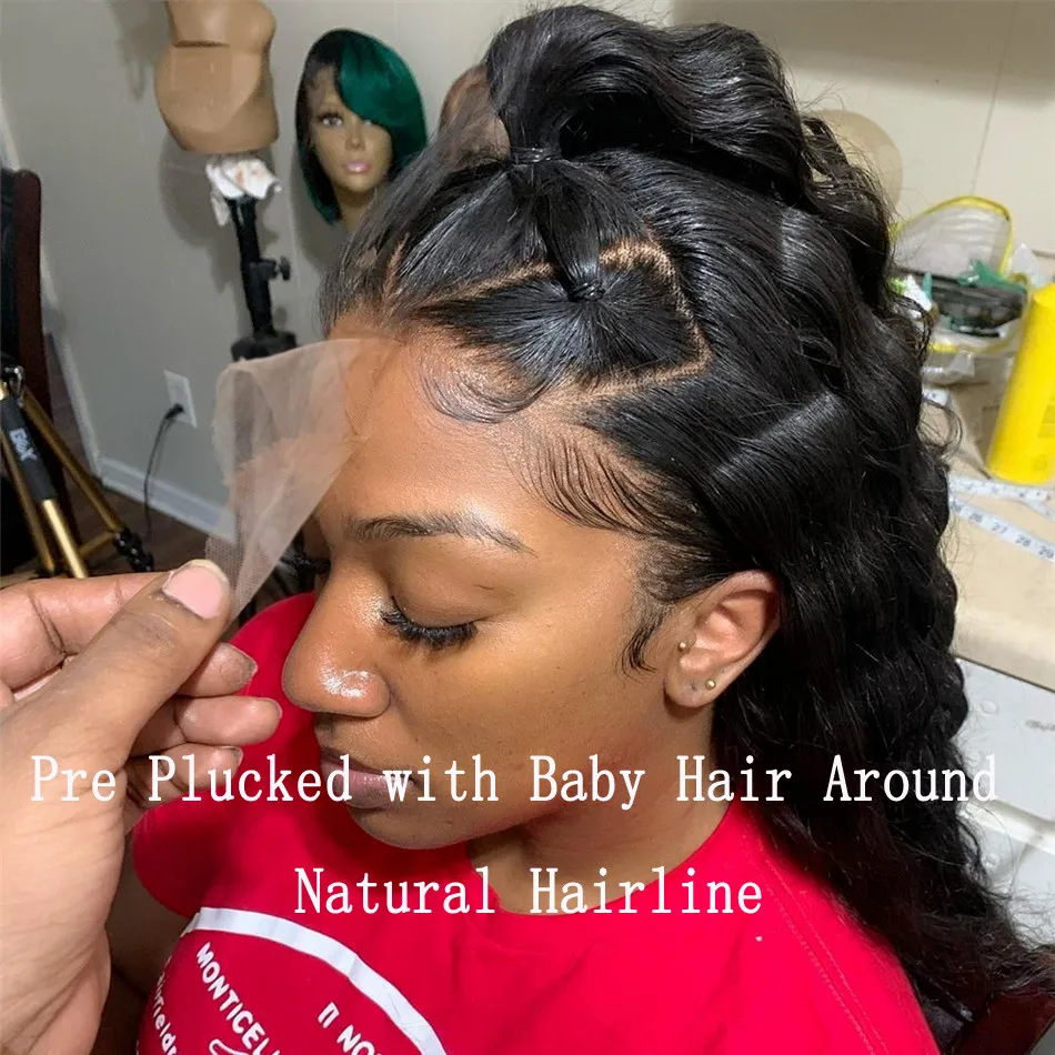 Предварительно выщипанные объемные волнистые 13х4 кружевные передние человеческие волосы парики для женщин кружевные передние al парики бразильские Remy 150% плотность RUIYU волосы