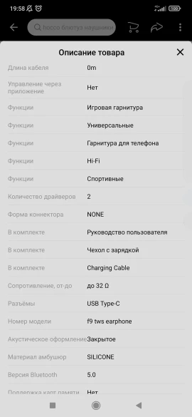 взял по скидке за 370р, за эту цену норм, качество звука средненькое, но слушать можно, вполне себе. Наушники заряжаются в специальном кейсе, сами наушнички держат заряд недолго, хватает на пару часов но сам кейс хорошо держит заряд, пока новые хватает зарядить наушники наверное раз 20-30. Что ещё сказать, неудобное управление сенсорными касаниями, один раз коснулся это пауза, два раза это перелистнуть трек, но когда наушник выпадывает из уха и ты его поправляешь касание тоже срабатывает, это неудобно, но блин, 300-500р за наушники, спасибо что вообще все функции работают, так что смело берите, продавец красавчик, не обламался, не ныл, все отправил быстро и пришло быстро, я доволен.