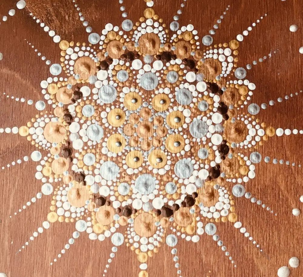 2. Накройте холст трафаретом мандалы, отметьте крошечные точки и точки ходьбы на холсте.
