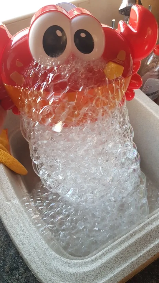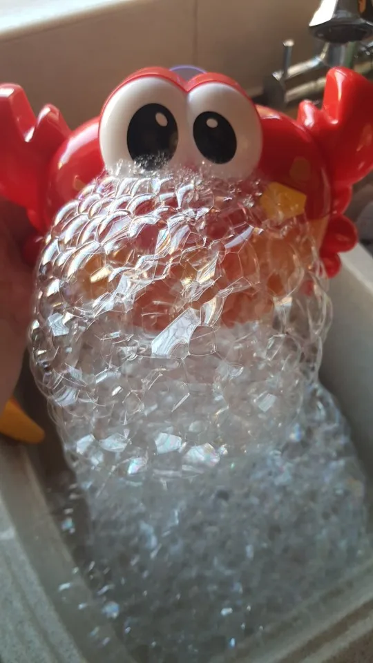 Это, как описано на изображении, работает отлично и очень весело для моего ребенка во время ванны с очень мало мыла, он делает много пены и пузырьков