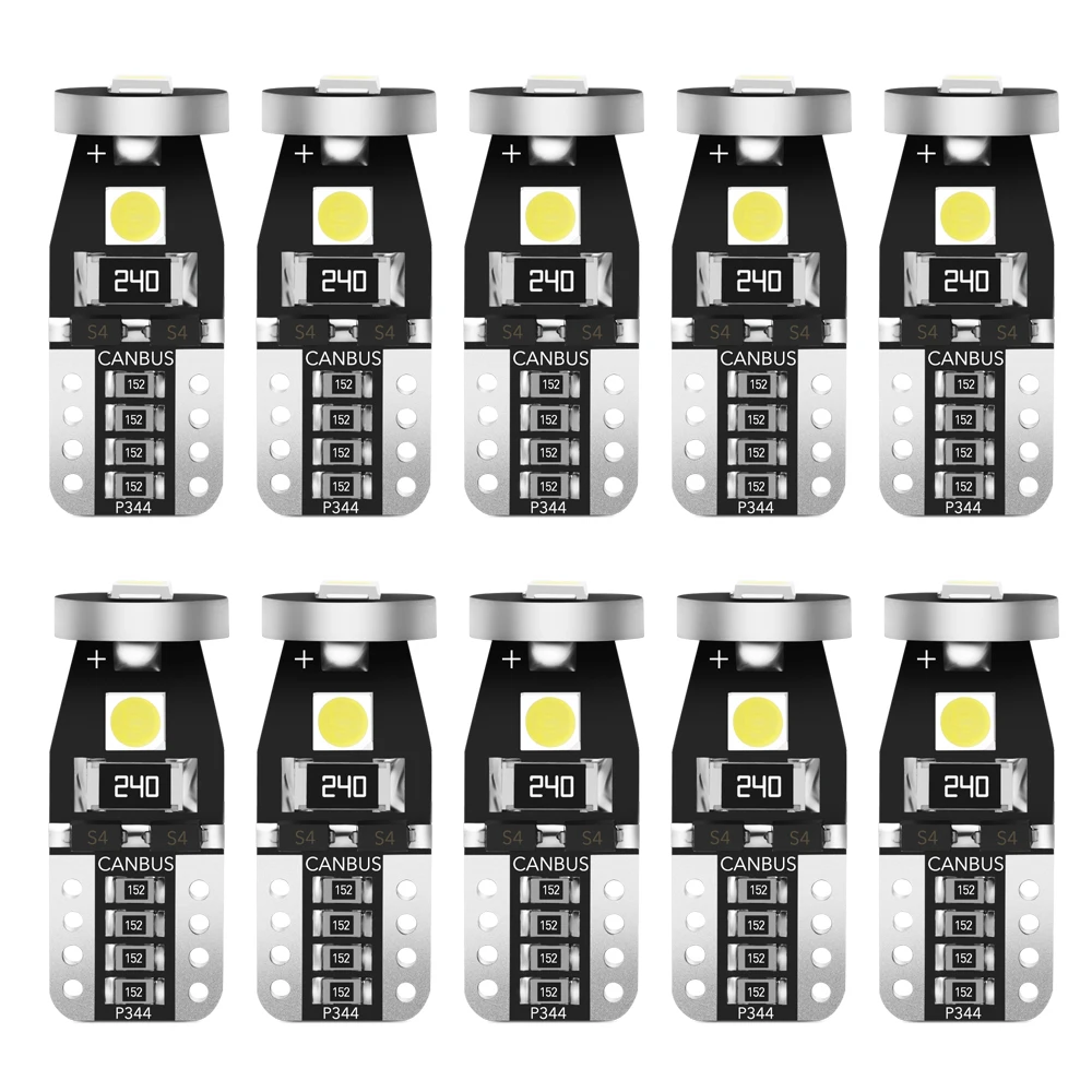 Автомобильный светодиодный светильник T10 W5W 10x Canbus, без ошибо...